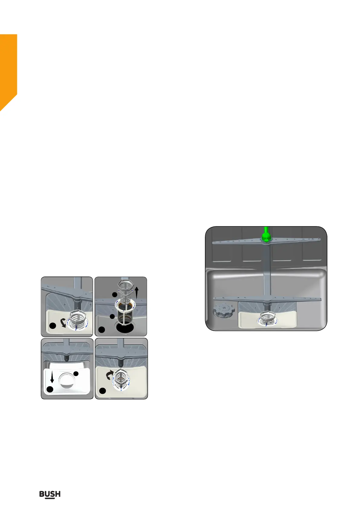 water. To remove the upper spray arm undo the nut
