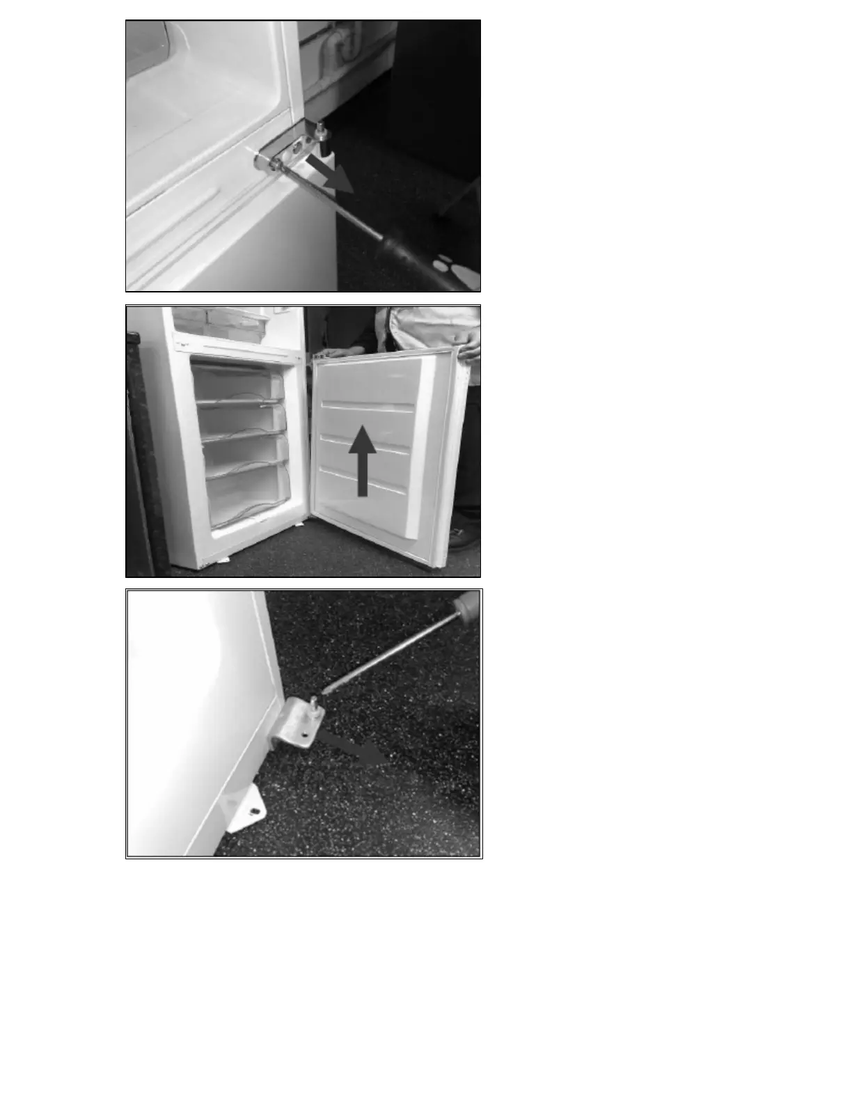 Bush BIFF7030 - Central hinge removal instructions; Freezer door removal procedure; Lower hinge removal instructions
