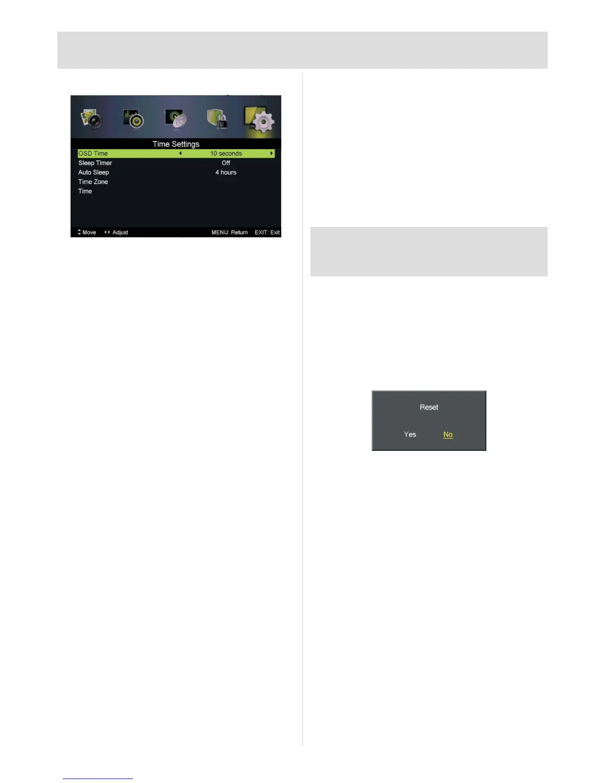 Sleep Timer:Press◄►toadjust:Off,5,15,