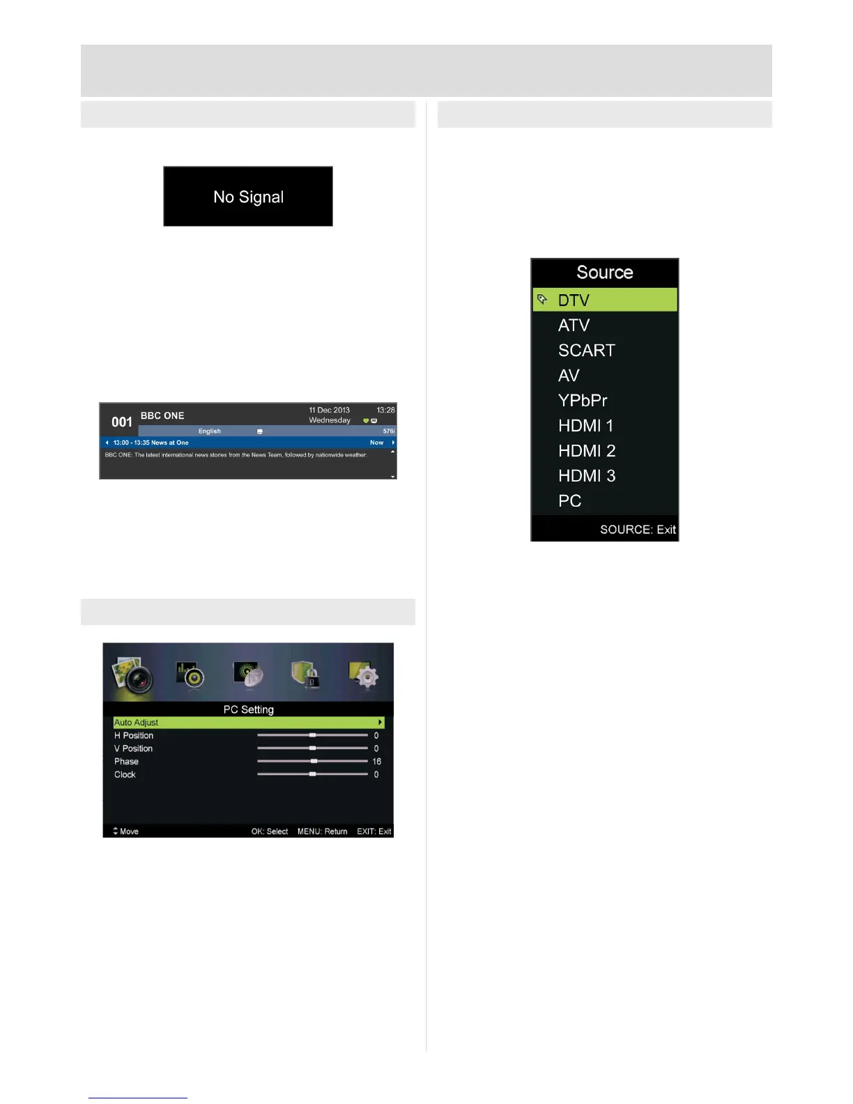 This will be displayed if the TV is not detecting a