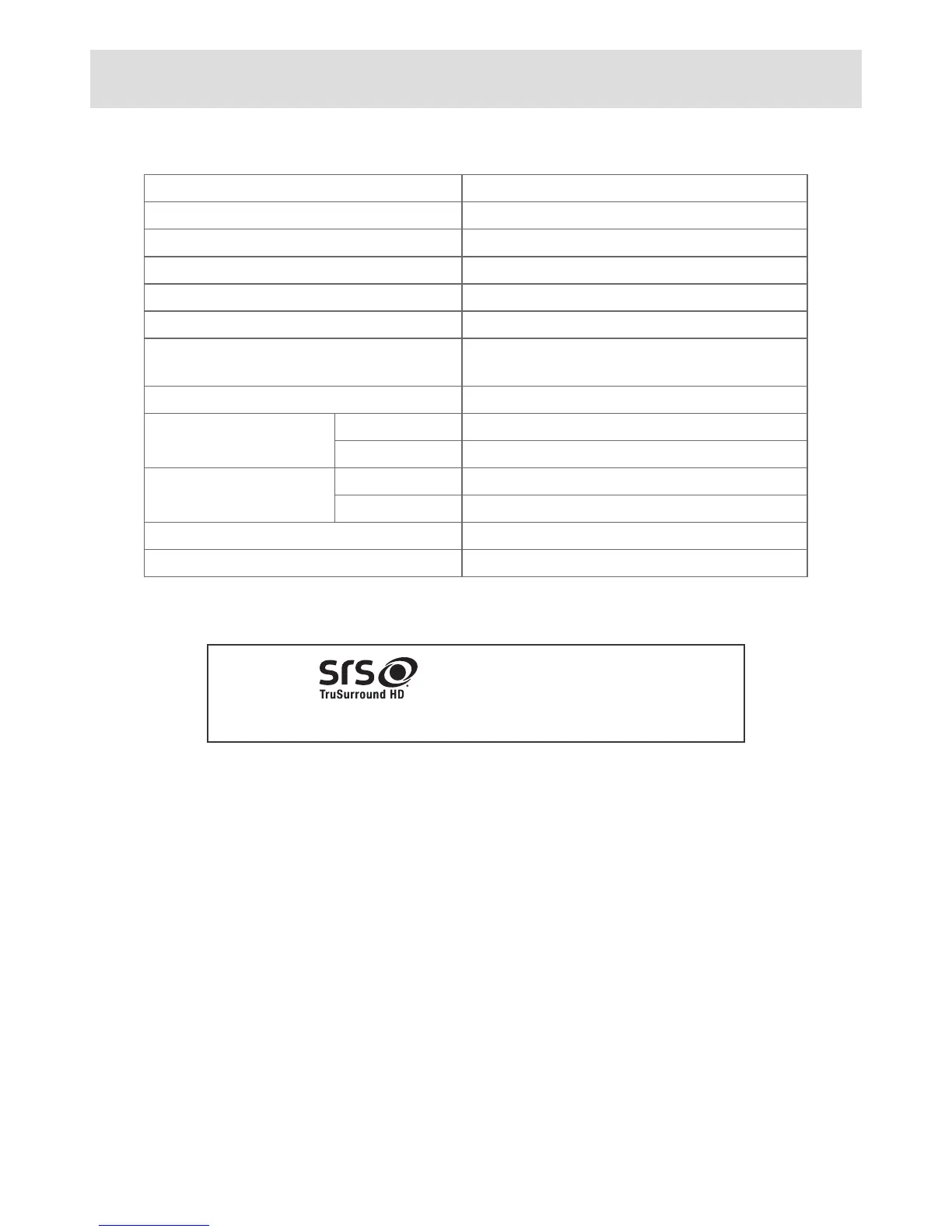 TruSurround HD technology is incorporated under license from SRS Labs, Inc.