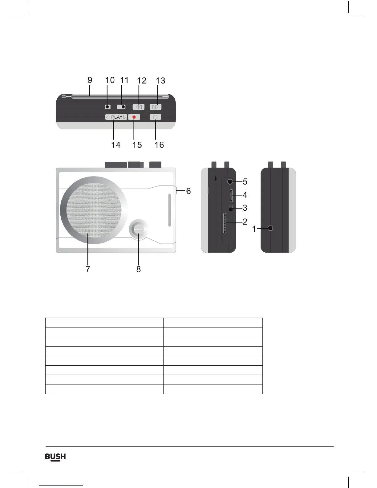 5. Earphone socket 6. Tape door