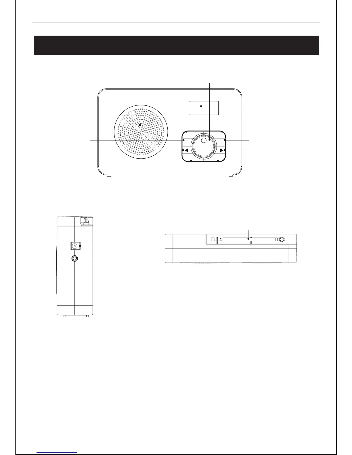 Bush BR05DAB - Product Overview; Front View Description; Side and Top Views