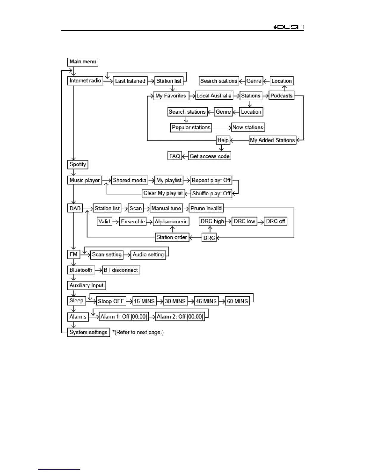 Bush BR320DABC - Menu Navigation Guide; Menu Map Overview