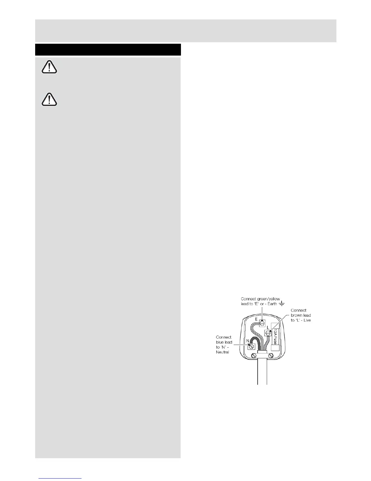 amp fuse approved to BS1363/A must be used.