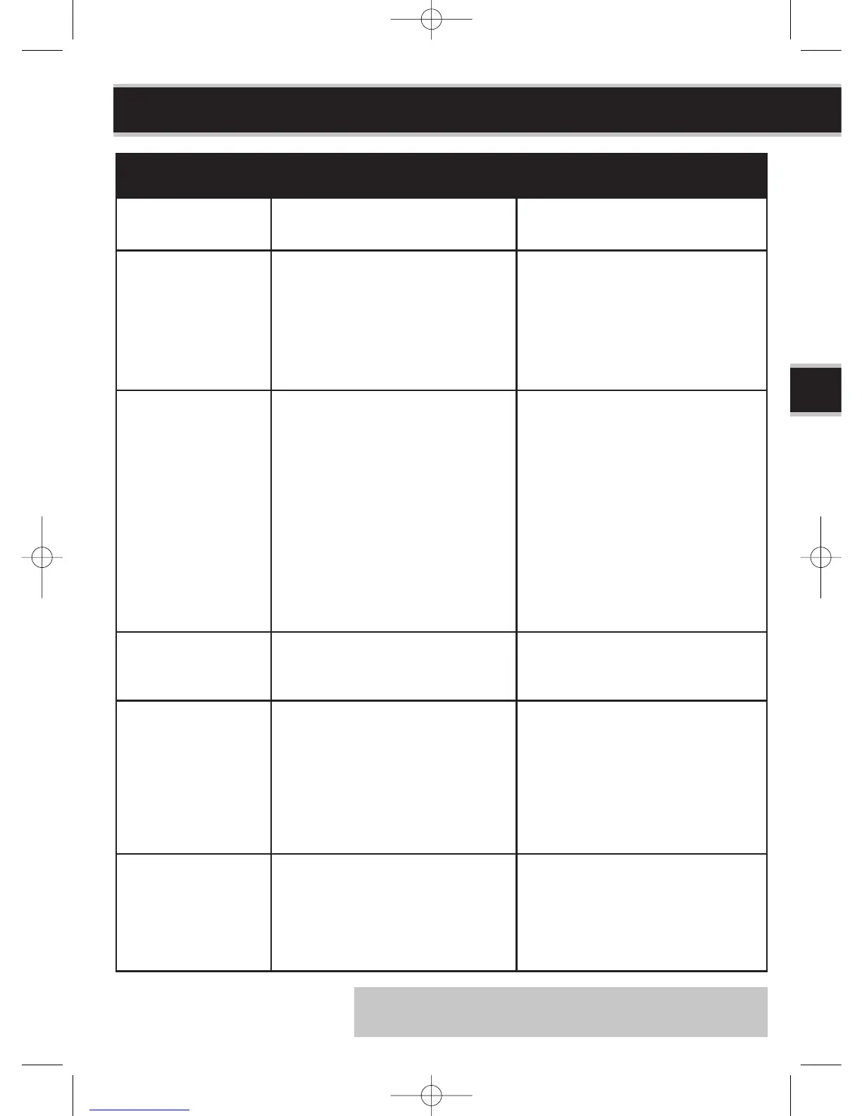 PROBLEM POSSIBLE CAUSES SOLUTIONS