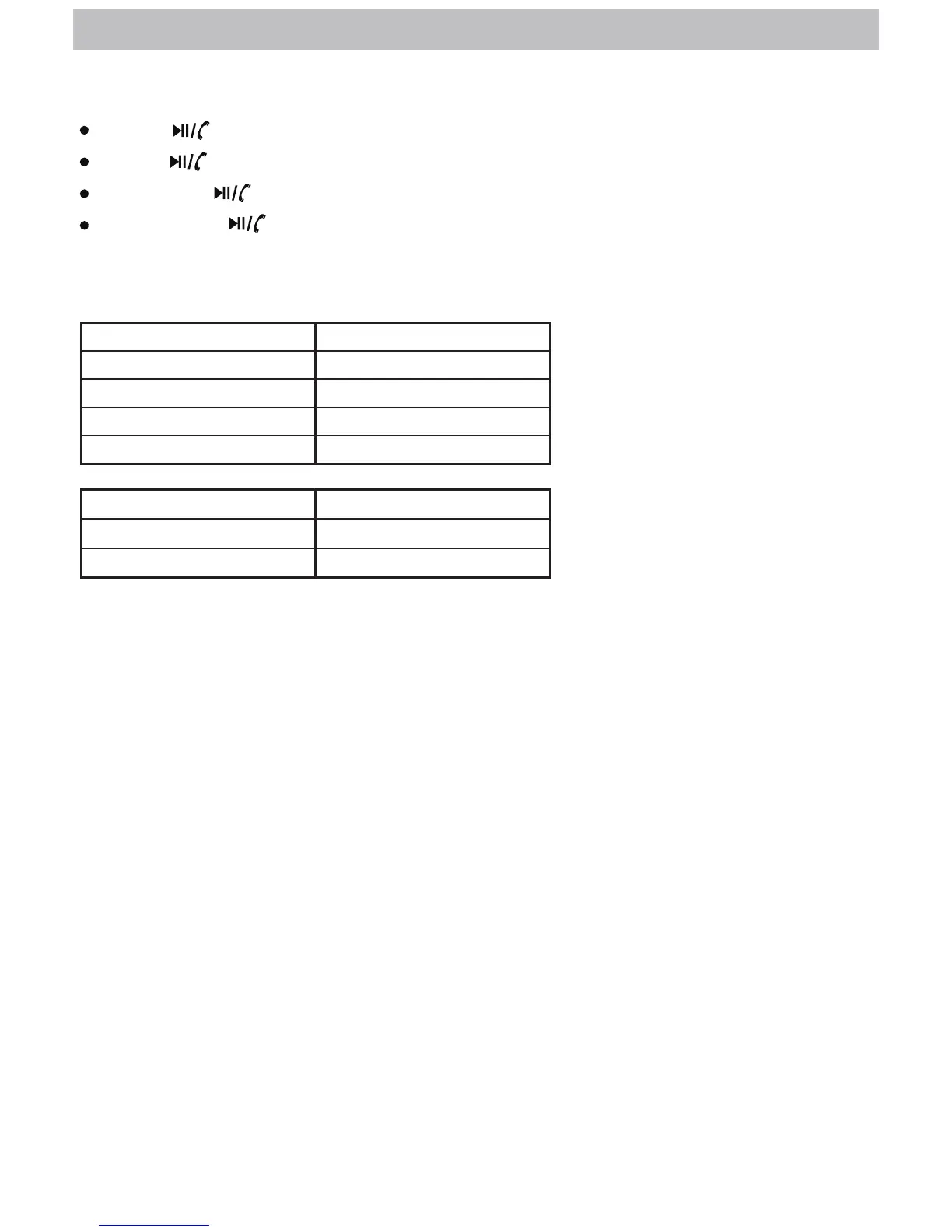 An incoming call received during playing in bluetooth mode, operate as the followings: