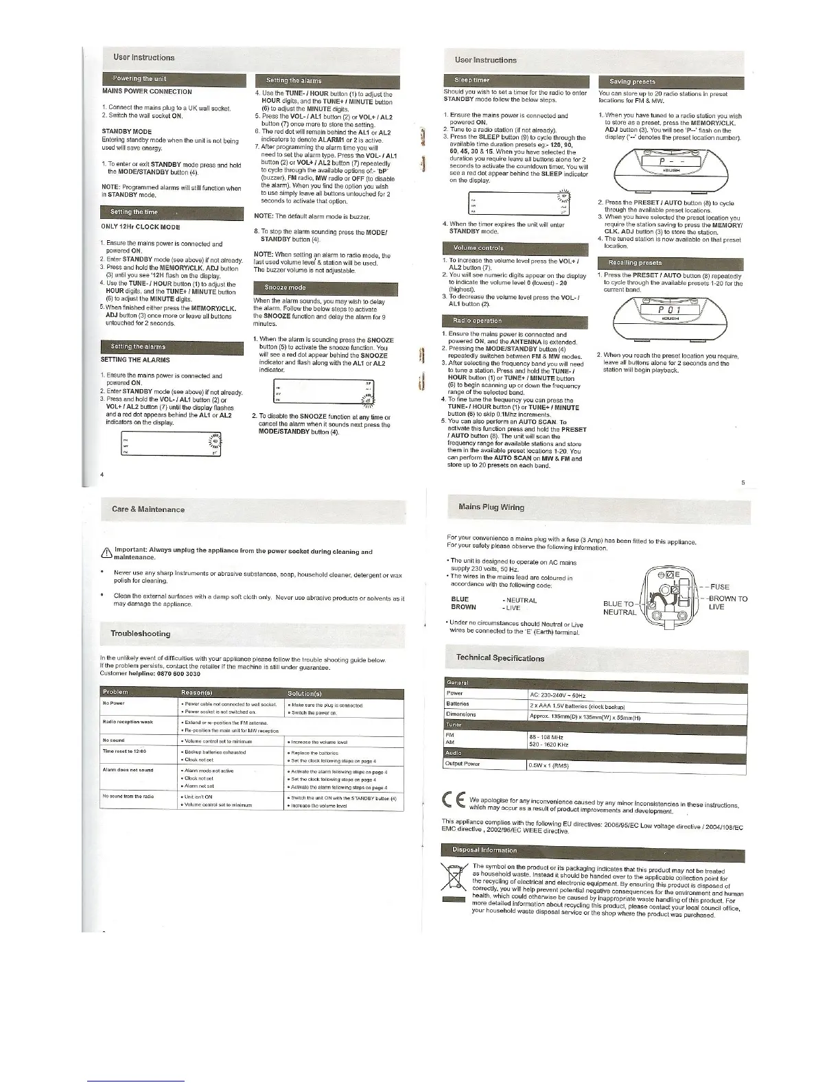 Bush CCR002 - User Instructions; Powering the Unit and Standby Mode; Setting Time and Alarms; Alarm and Snooze Features