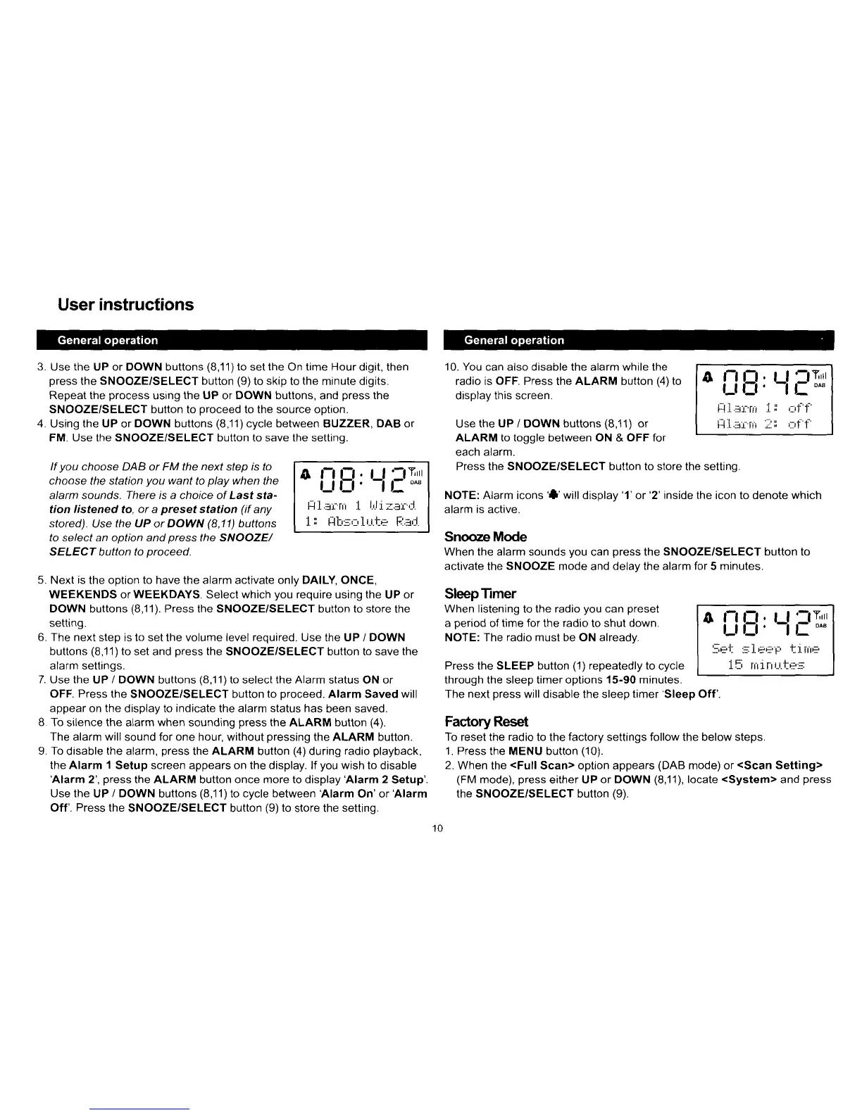 FM. Use the SNOOZE/SELECT button to save the settino.
