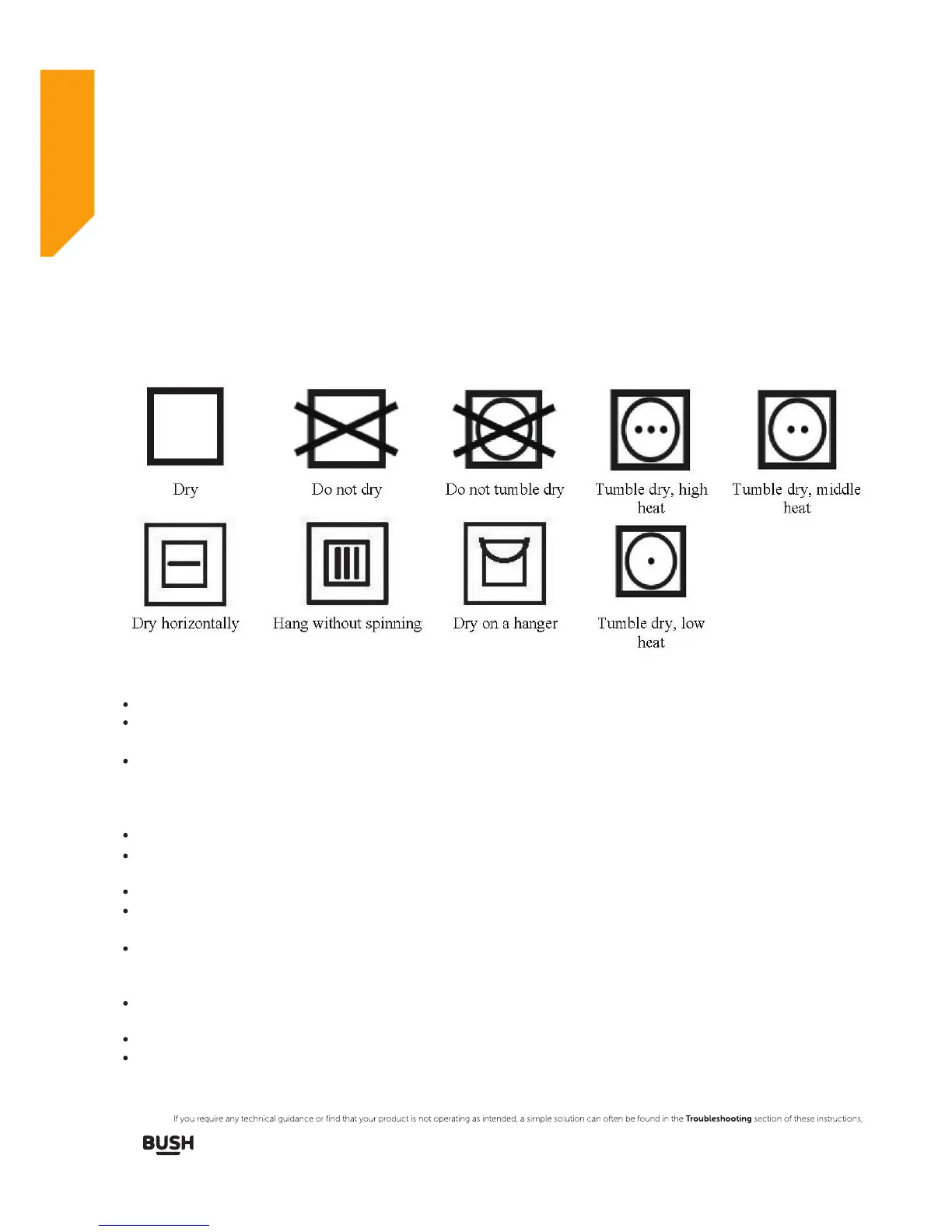 Before using the tumble dryer, you have to ensure the laundry is suitable to dry in the tumble dryer.