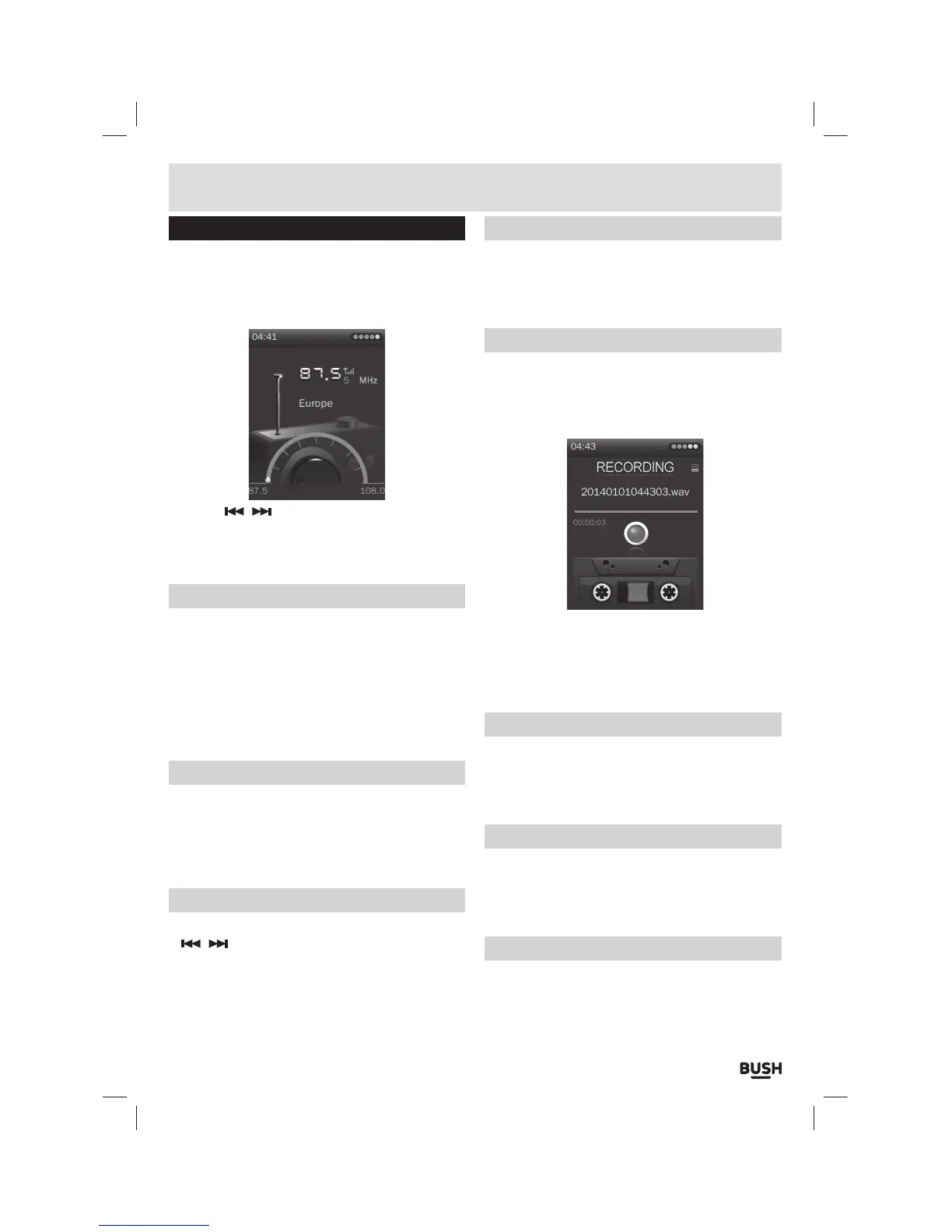 2: Set the record gain level from 1-5. Press the ‘SELECT’