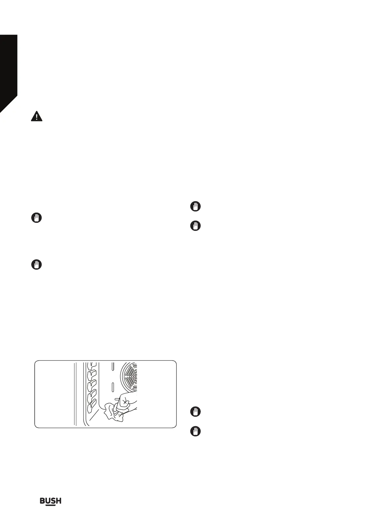 • Wipe the oven with a soft cloth soaked in soapy