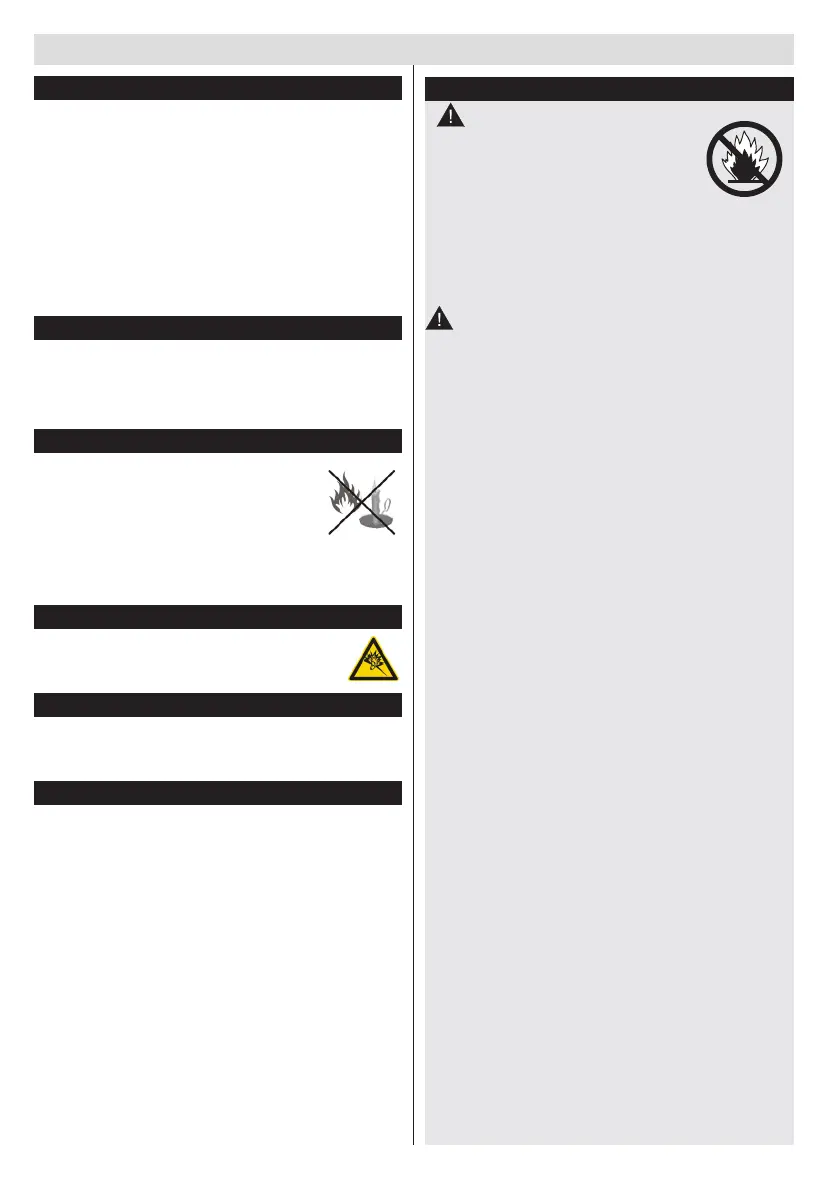• Do not expose this TV to rain or water, as this may