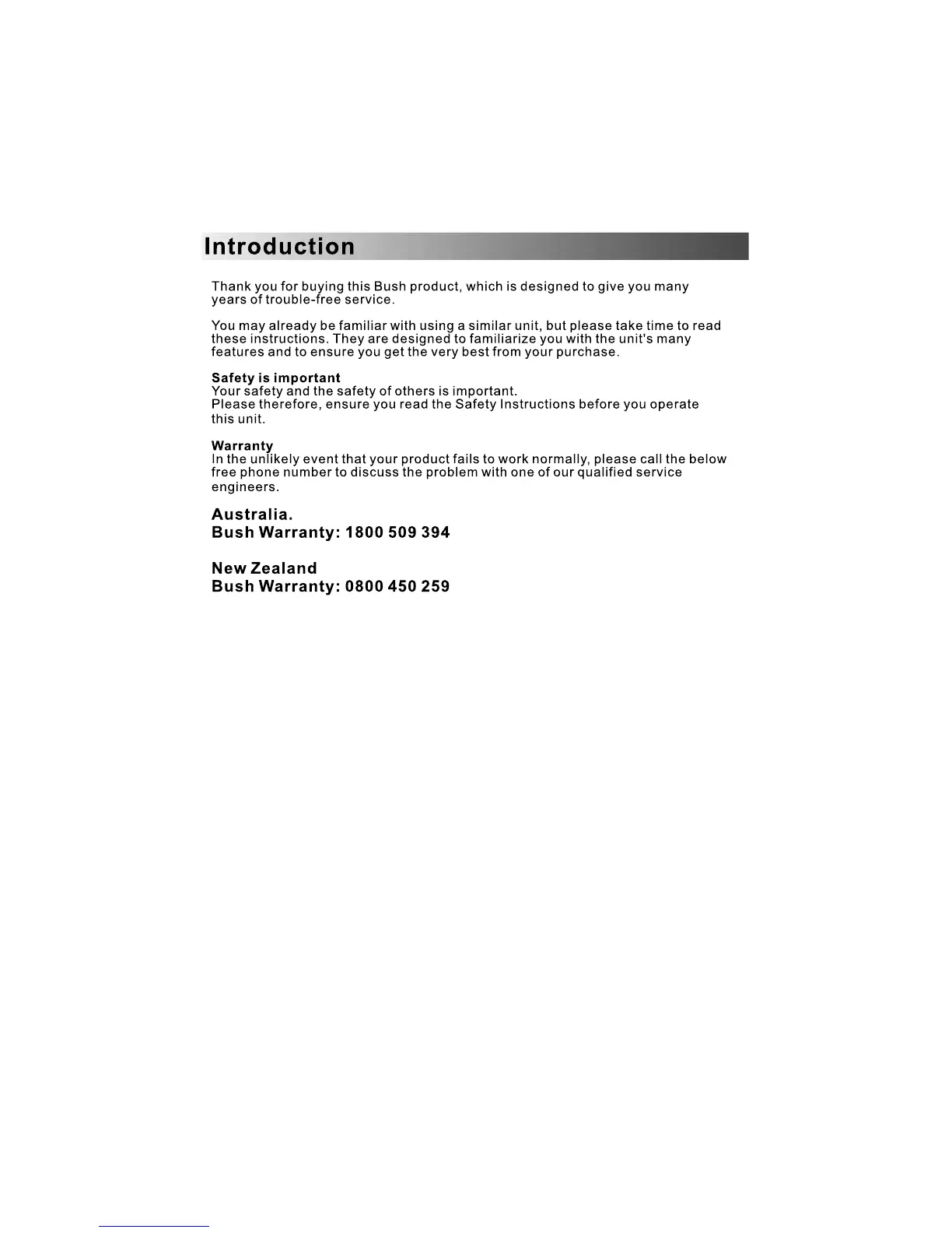 Bush DPF801 - Introduction and Support; Product Welcome; Safety and Warranty Contacts