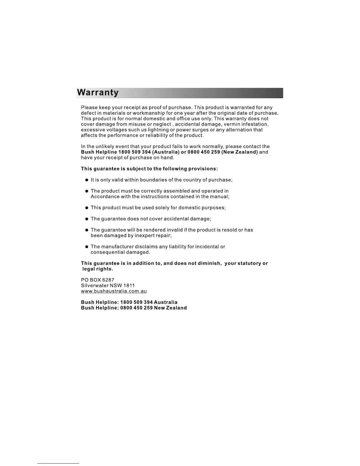Bush DPF801 - Product Warranty and Support