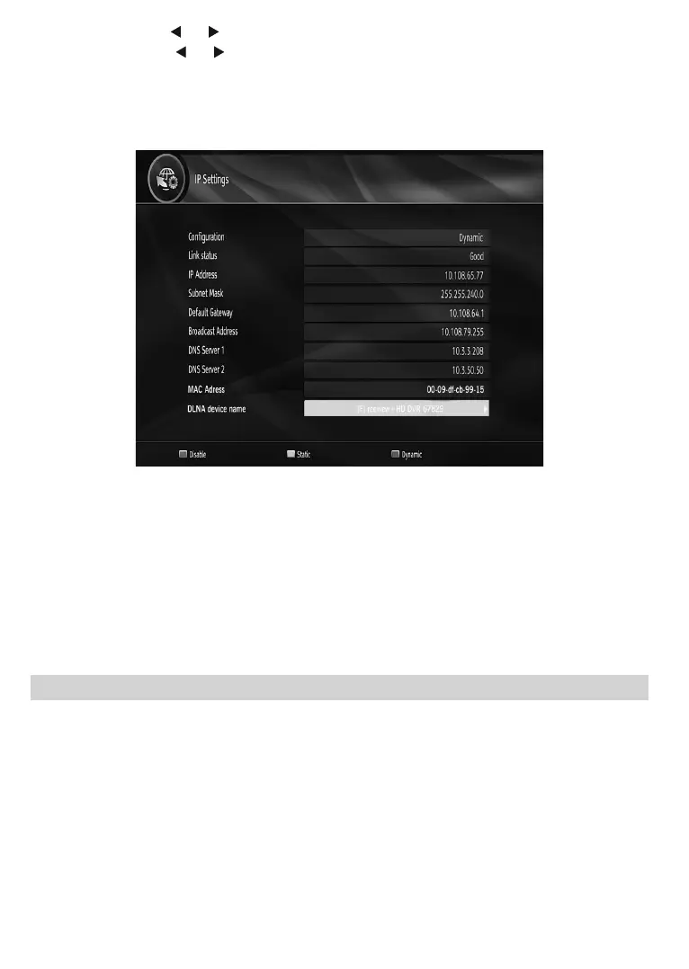 <RXFDQFRQ¿JXUH\RXUUHFHLYHU¶V,3VHWWLQJVE\XVLQJWKLVPHQXVFUHHQ