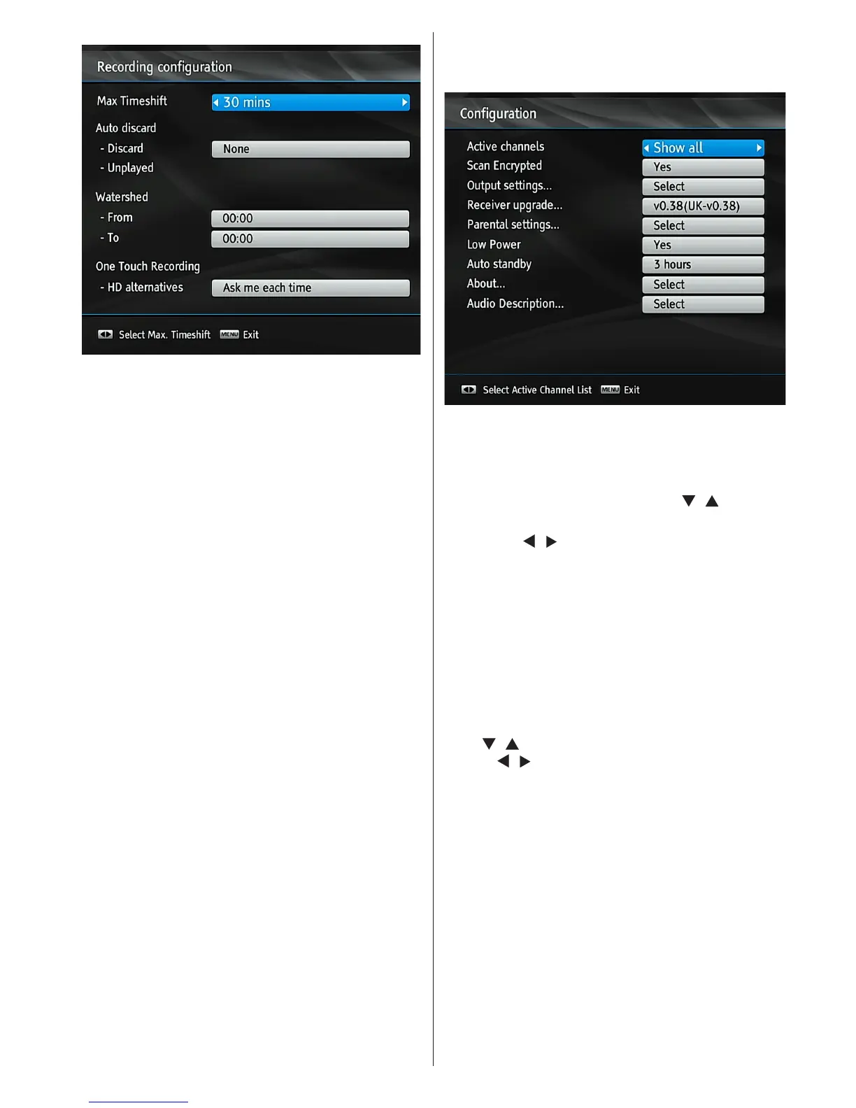 • You can congure the main settings of your set top