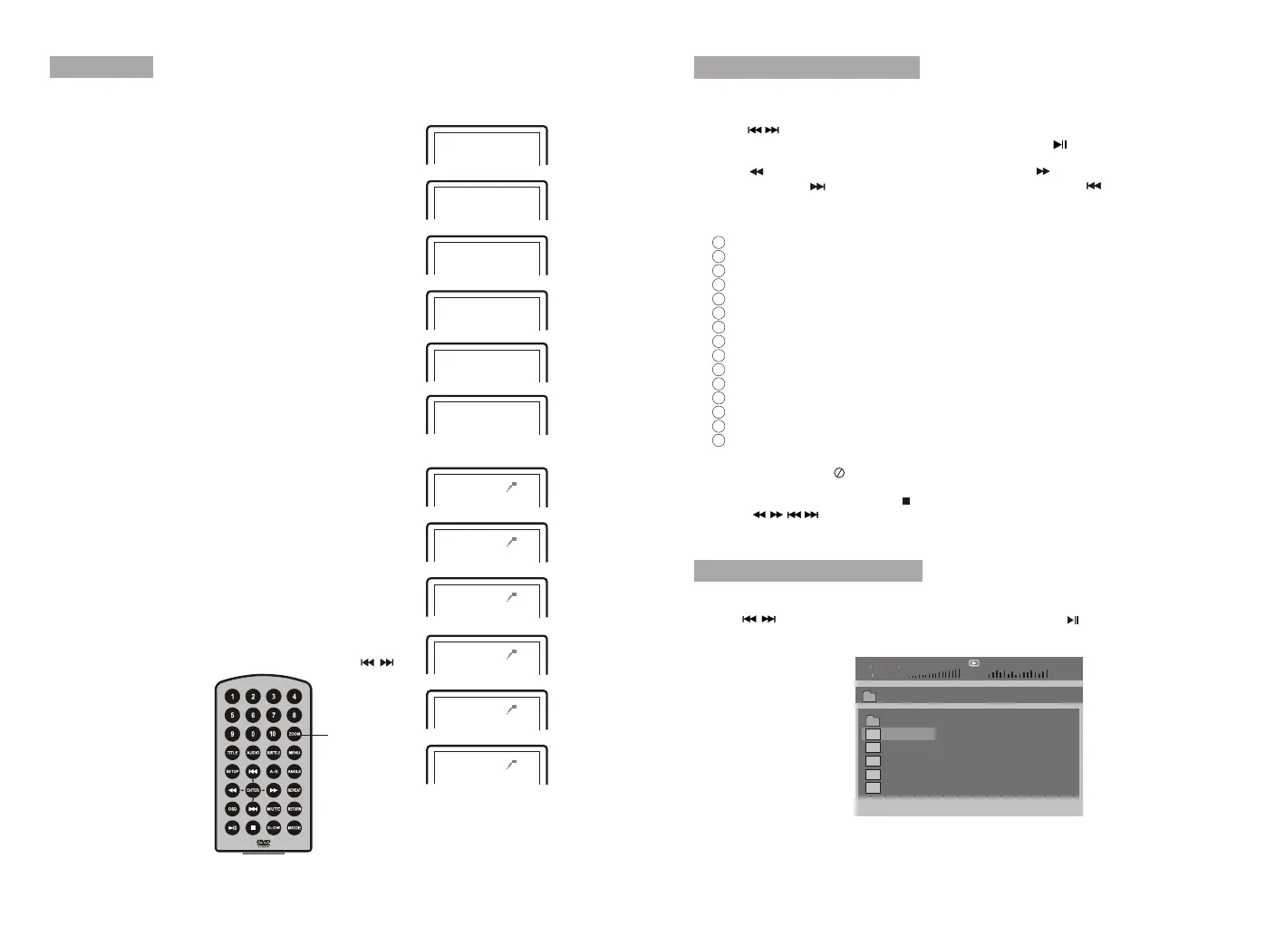 Press “ ” or “ENTER” button to choose a MP3 file; Press “ ” or “ ENTER” button to