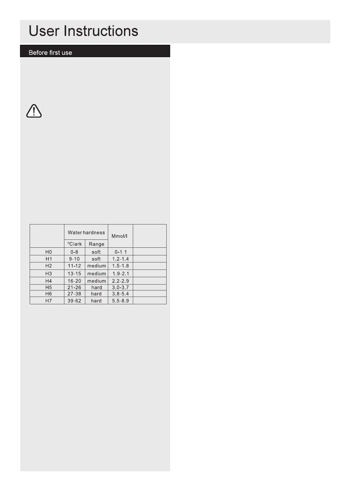 water hardness area region like UK.