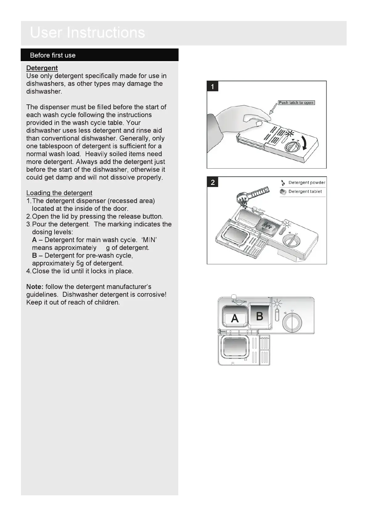 Bush DWFS146W - Detergent; Loading the detergent
