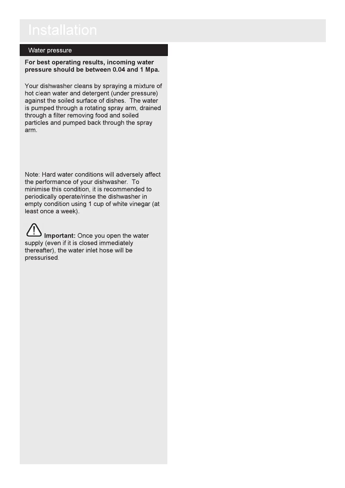 Bush DWFS146W - Water pressure