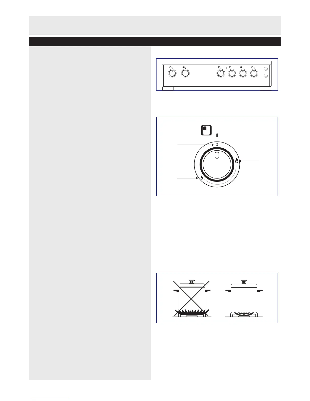 flame symbol) and minimum (small flame symbol).