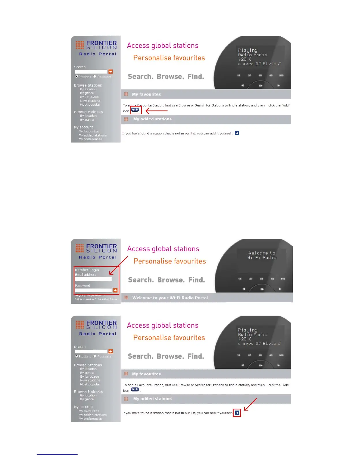 stations not listed. You can add your own stations via the portal (www. wifiradio-frontier.com).