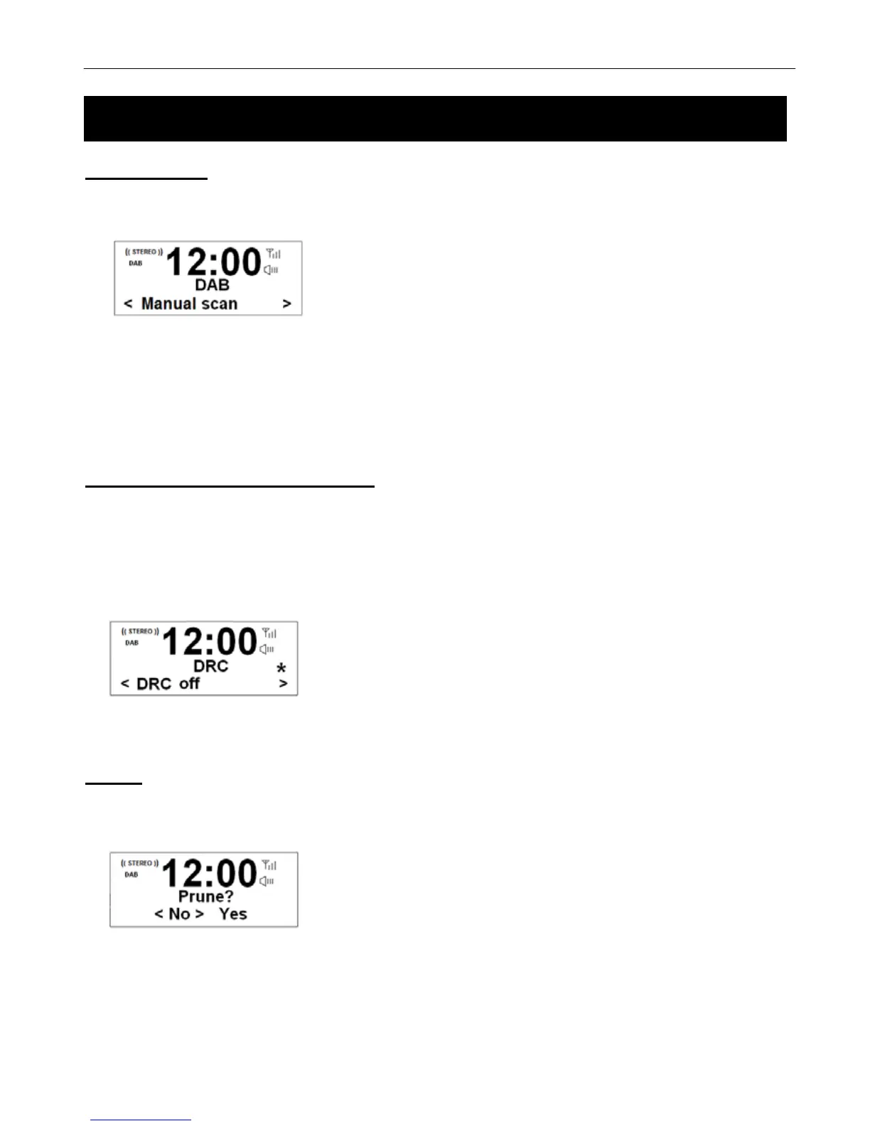 1. Press Menu button ÆTurn the Tune/Select knob to the DRC menu Æ Press the Tune/Select knob to confirm.