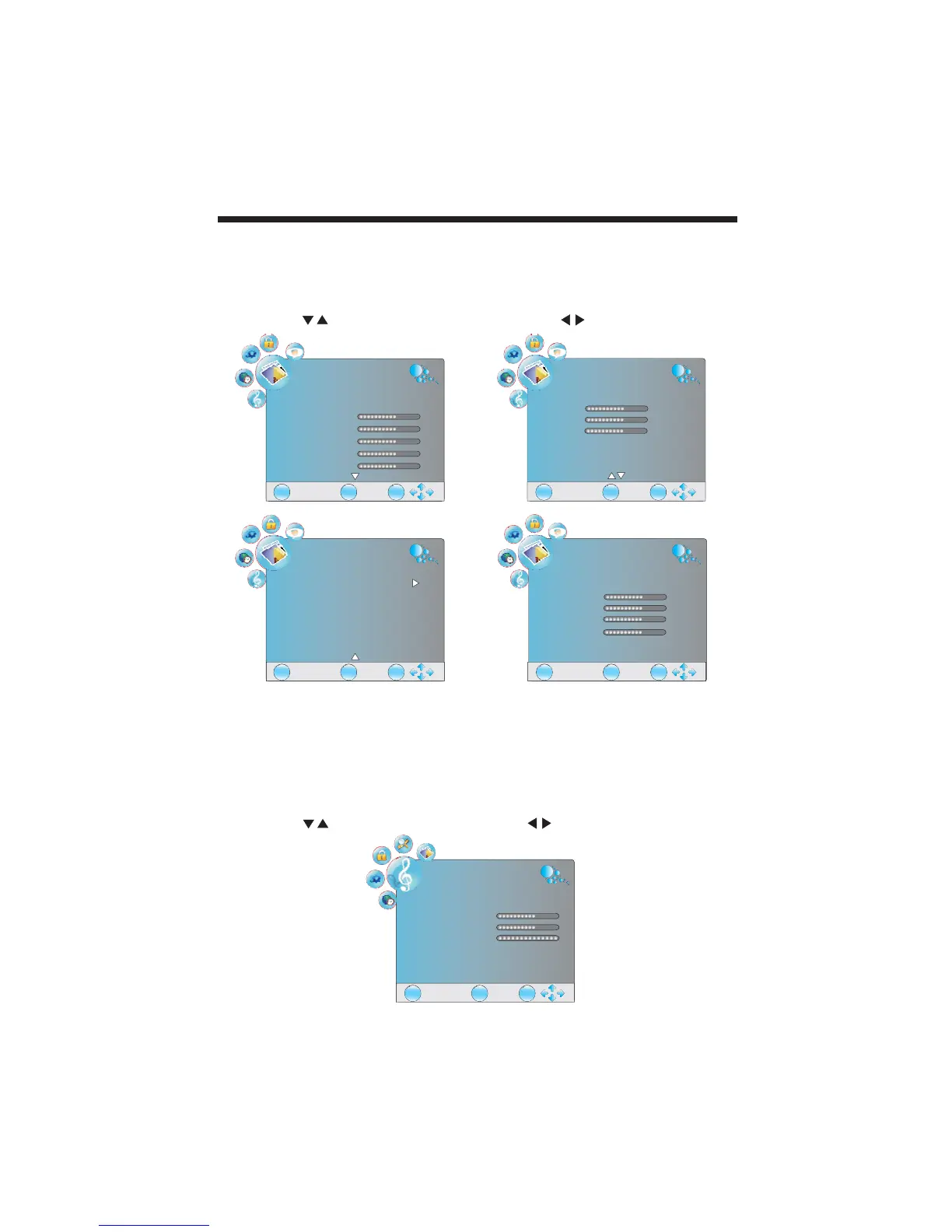 Press the buttons to select items and press the buttons to adjust.