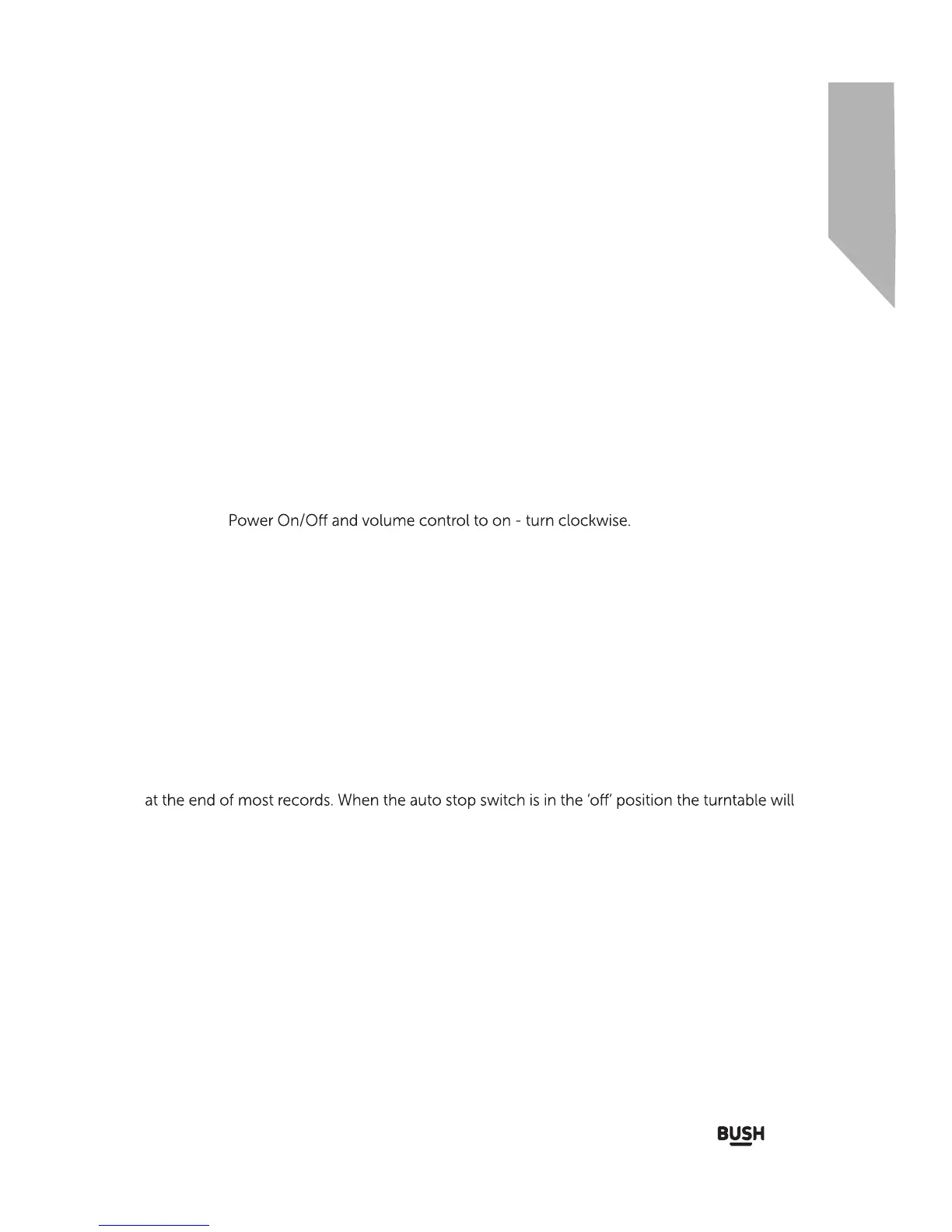 When the auto stop switch is in the ‘on’ position the turntable will automatically stop spinning