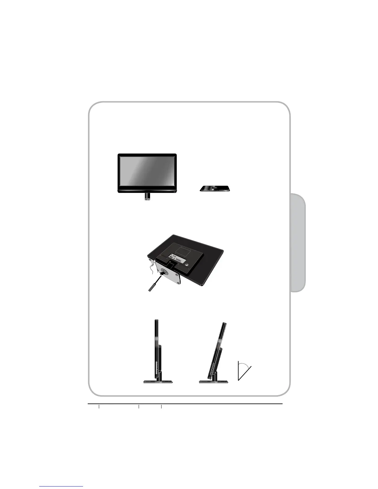 The angle of the LED LCD TV may be adjusted approximately 20 degrees.