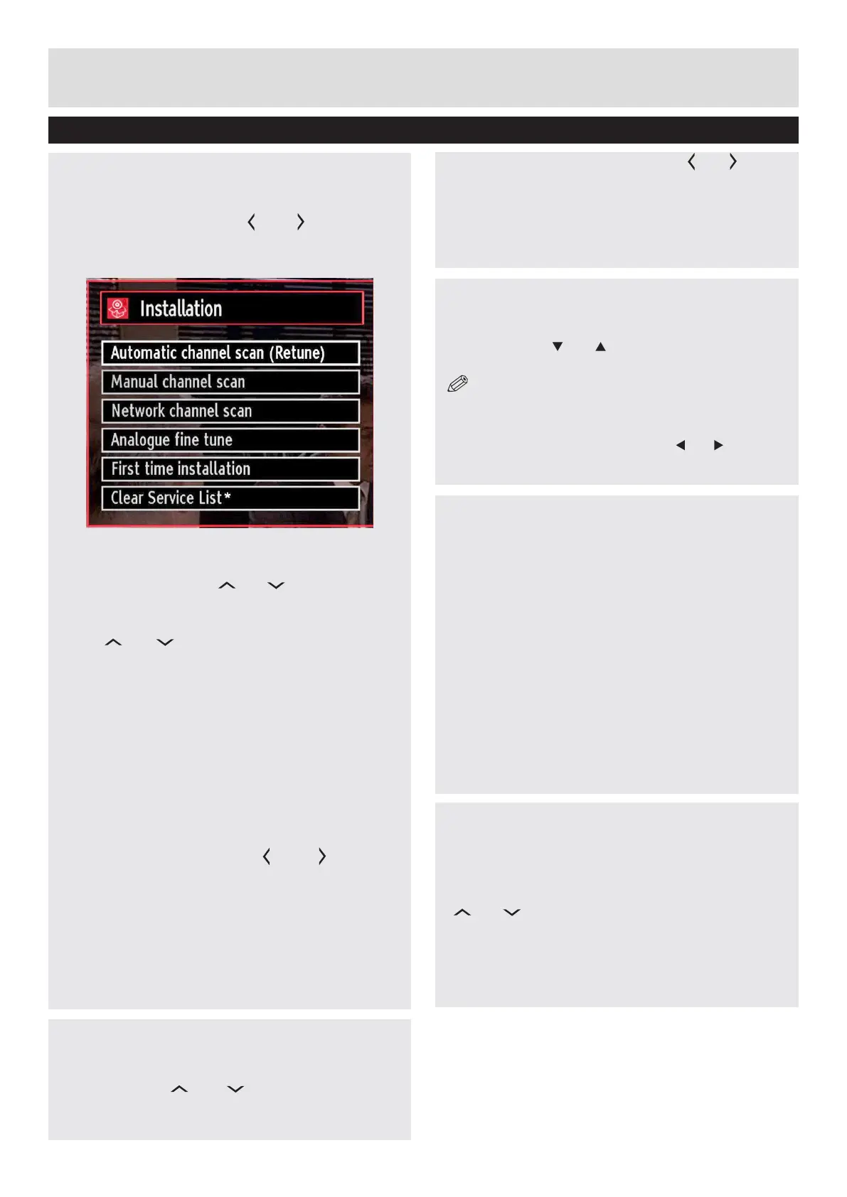 menu by using “ ” or “ ” and OK buttons. Analogue