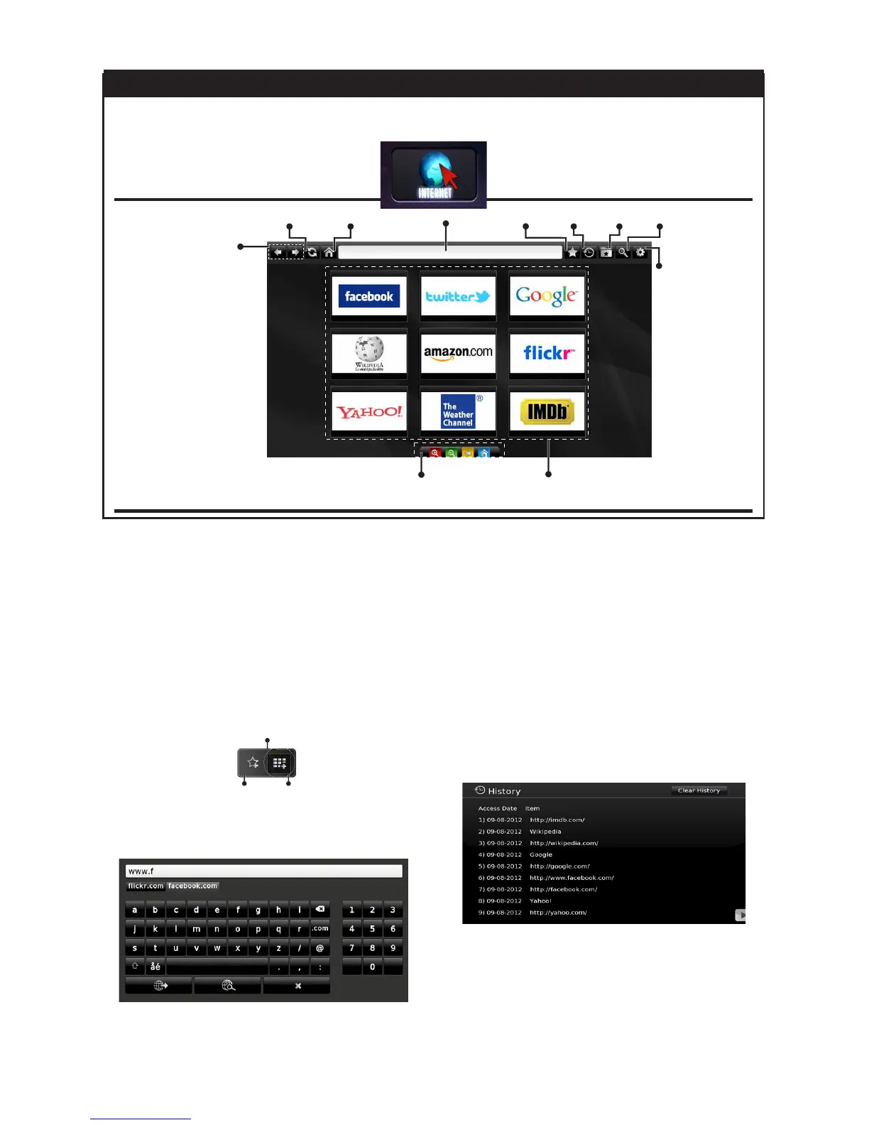 • To view your browsing history, click the history