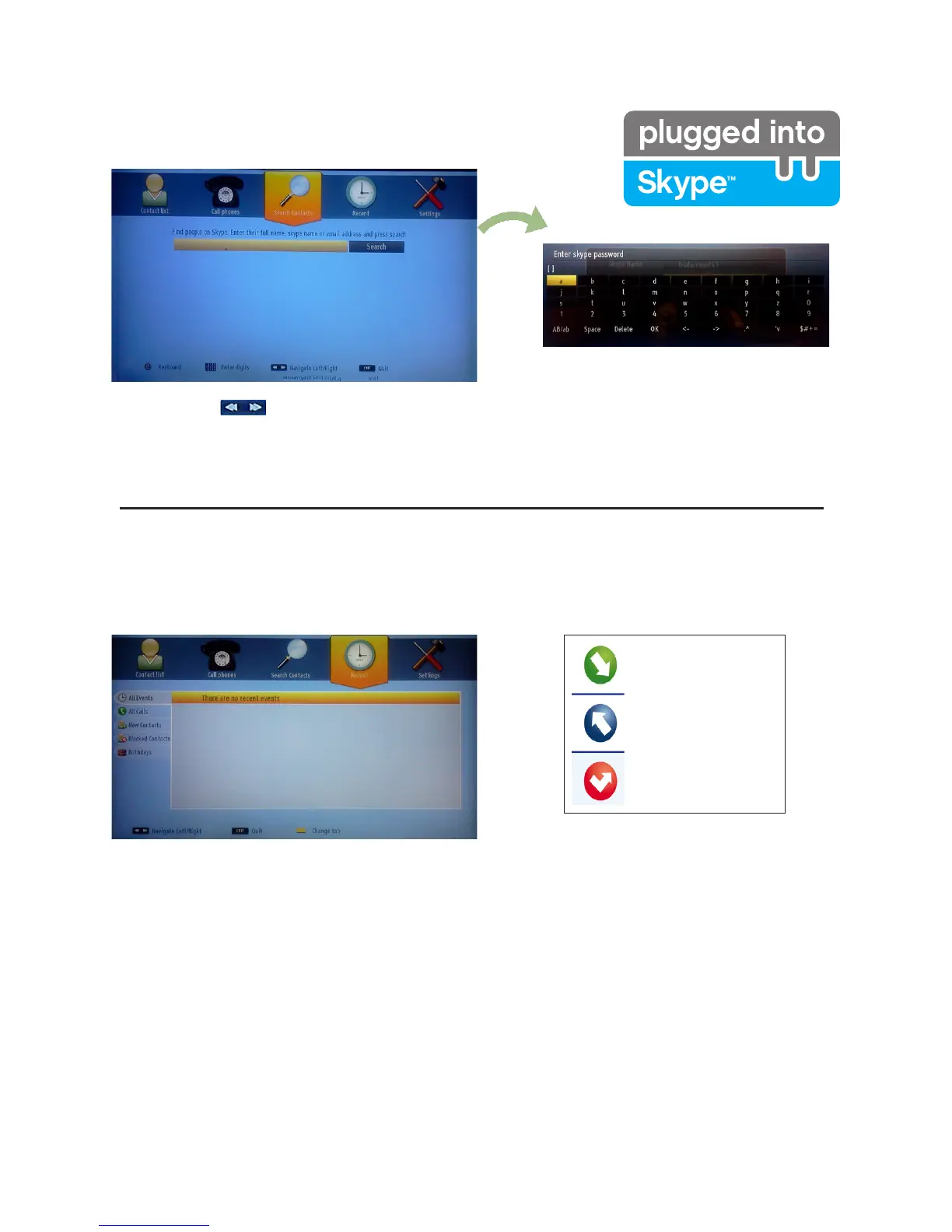 Your Skype history can be seen in this section. To view recent history options, use the p+ and p- buttons.