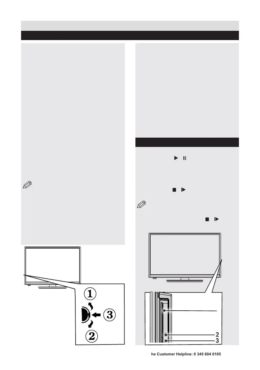 For any help concerning set up and use of your TV please call the Customer Helpline: 0 345 604 0105