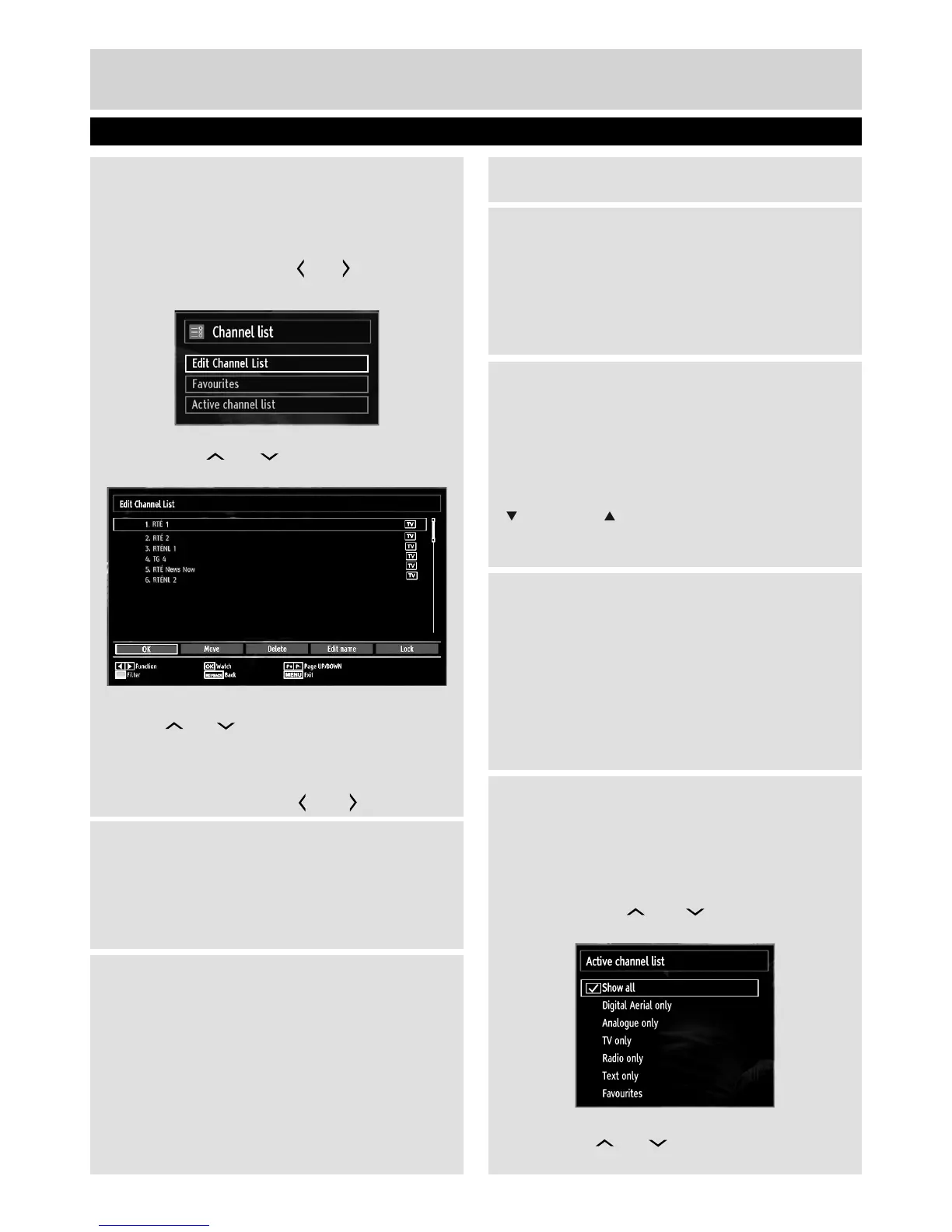 Free/CAS*, A-Z or Sort from channel list fi lter menu