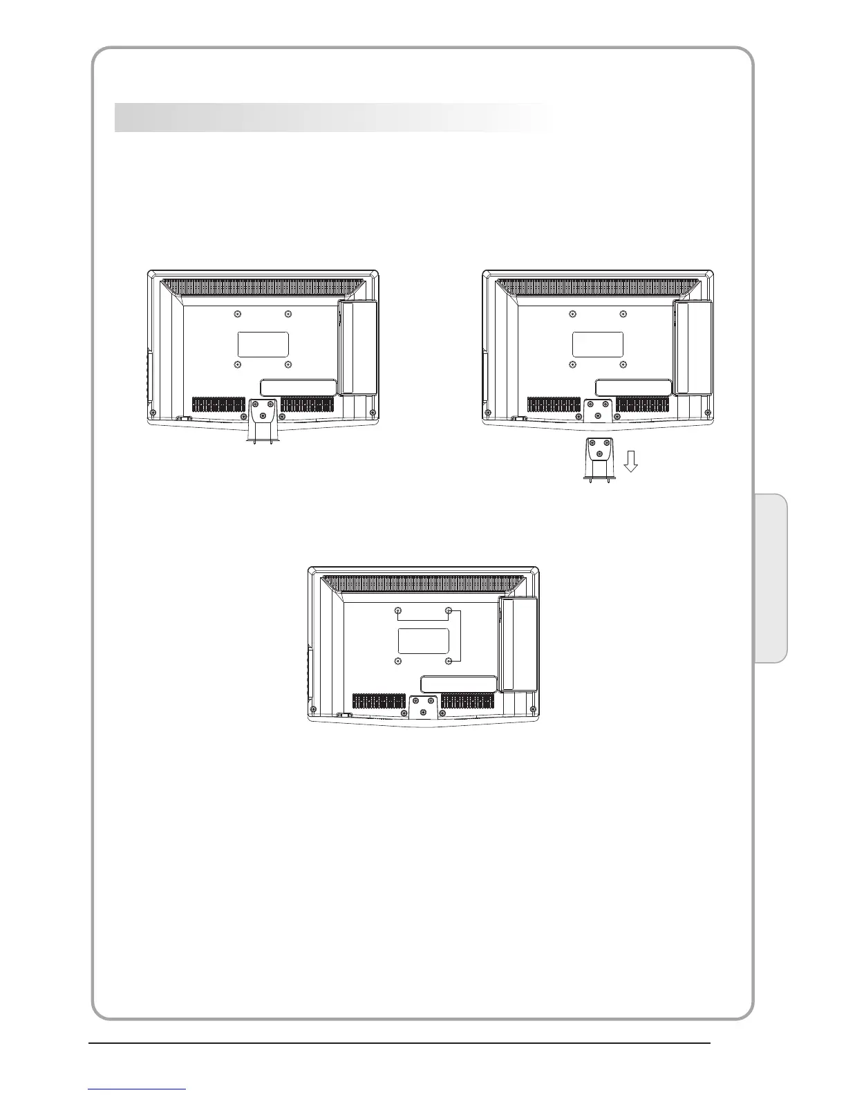 2.Remove the screws from the lower part of the television, where the base joins to the