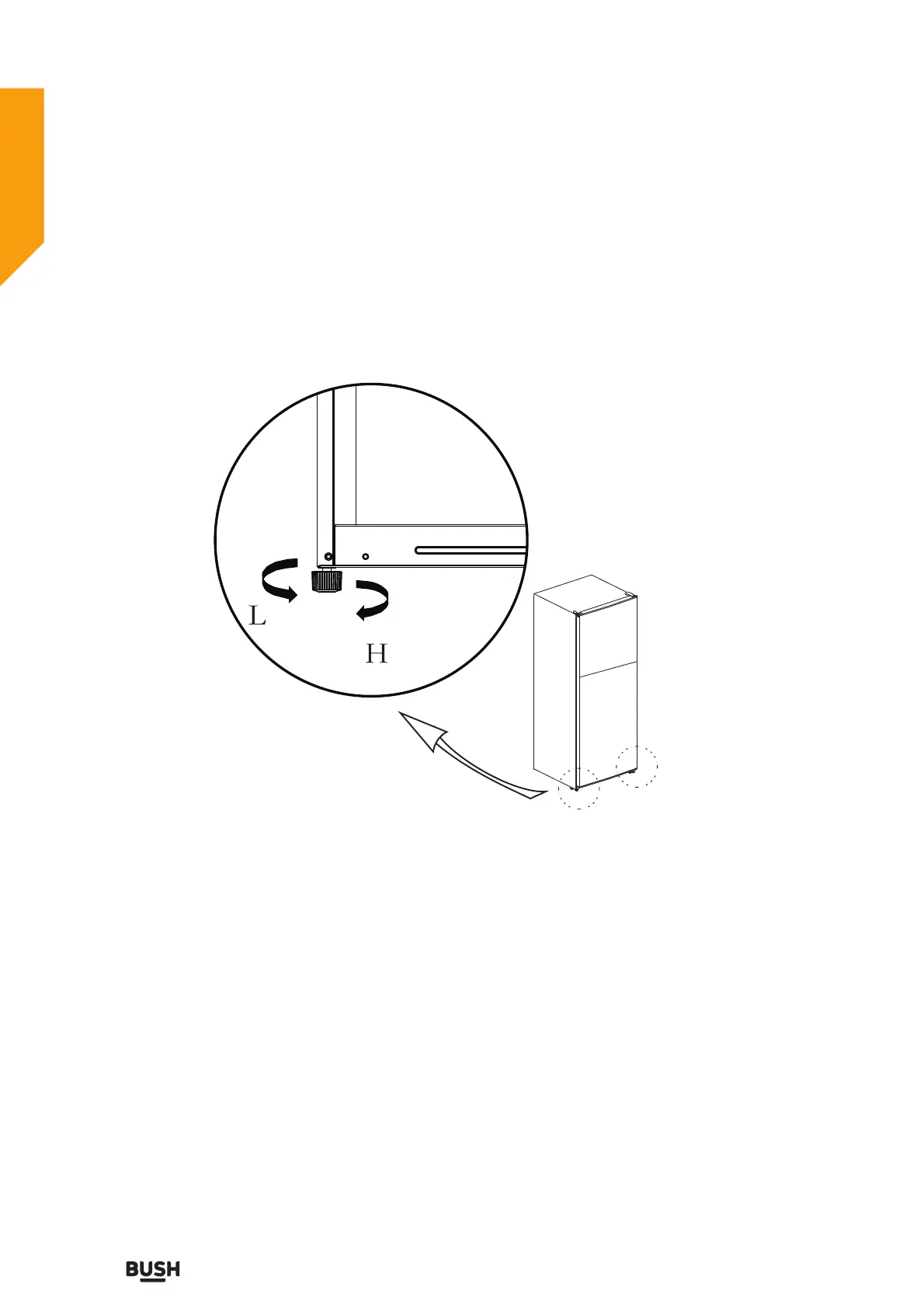 b.Turn the feet counterclockwise to lower the refrigerator;