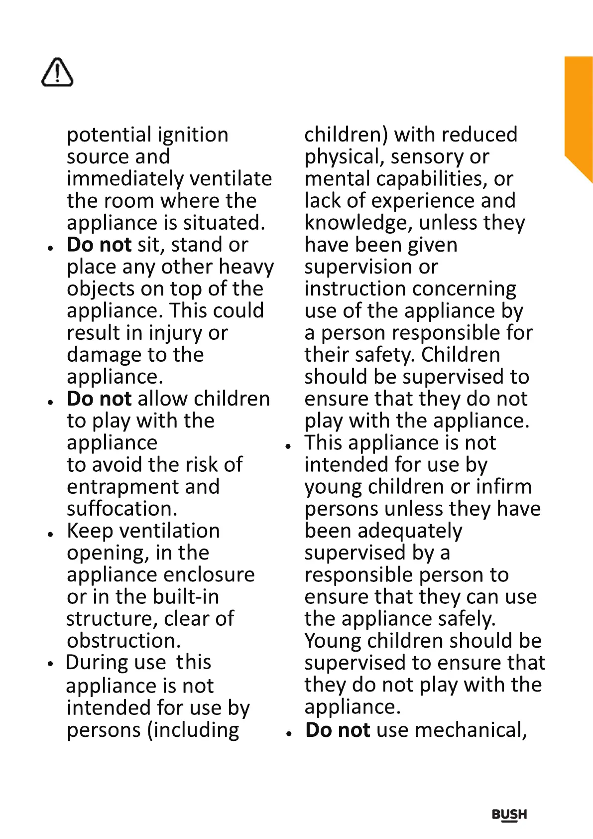 Bush M50142FFW - General Appliance Safety Warnings