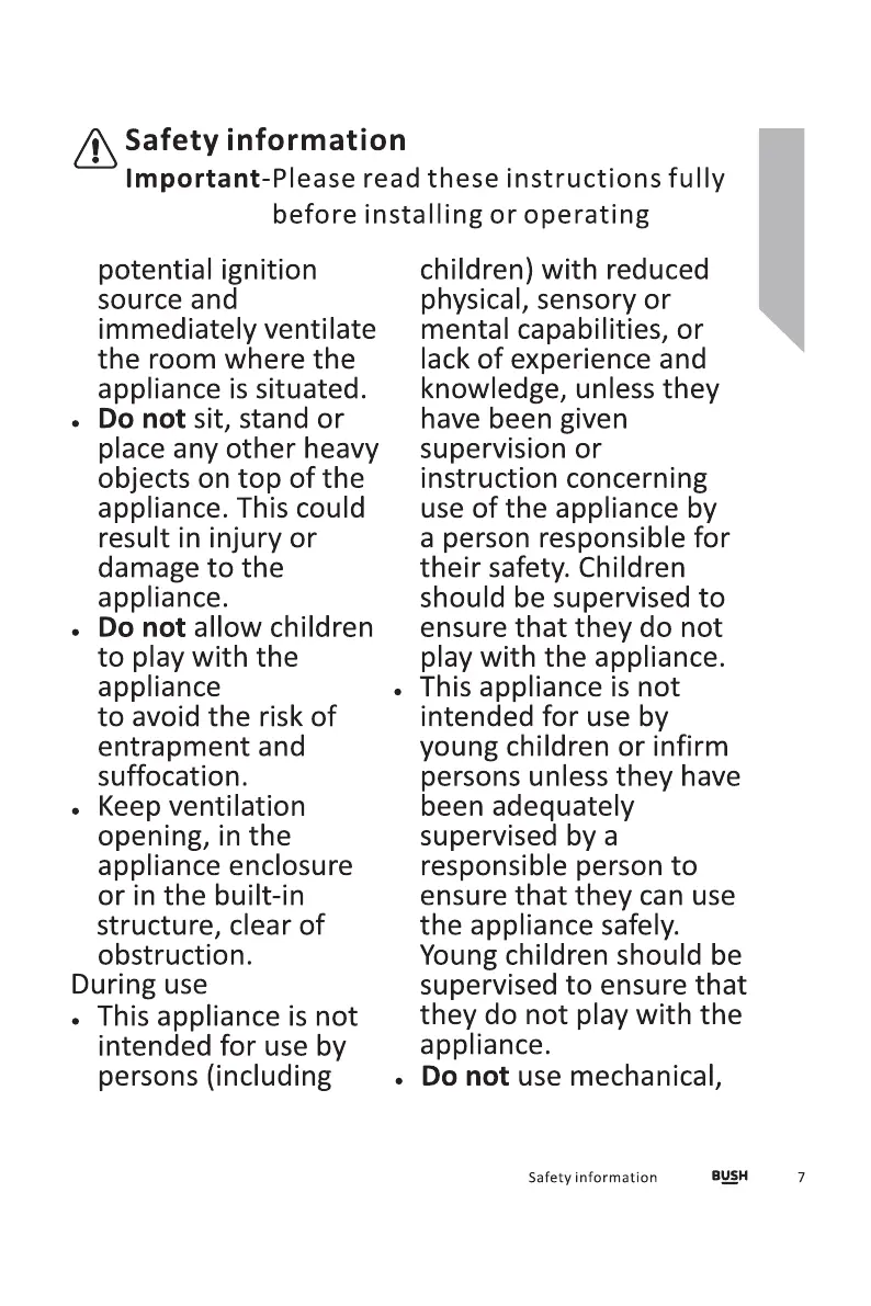Bush M5085UCF - During Use Precautions