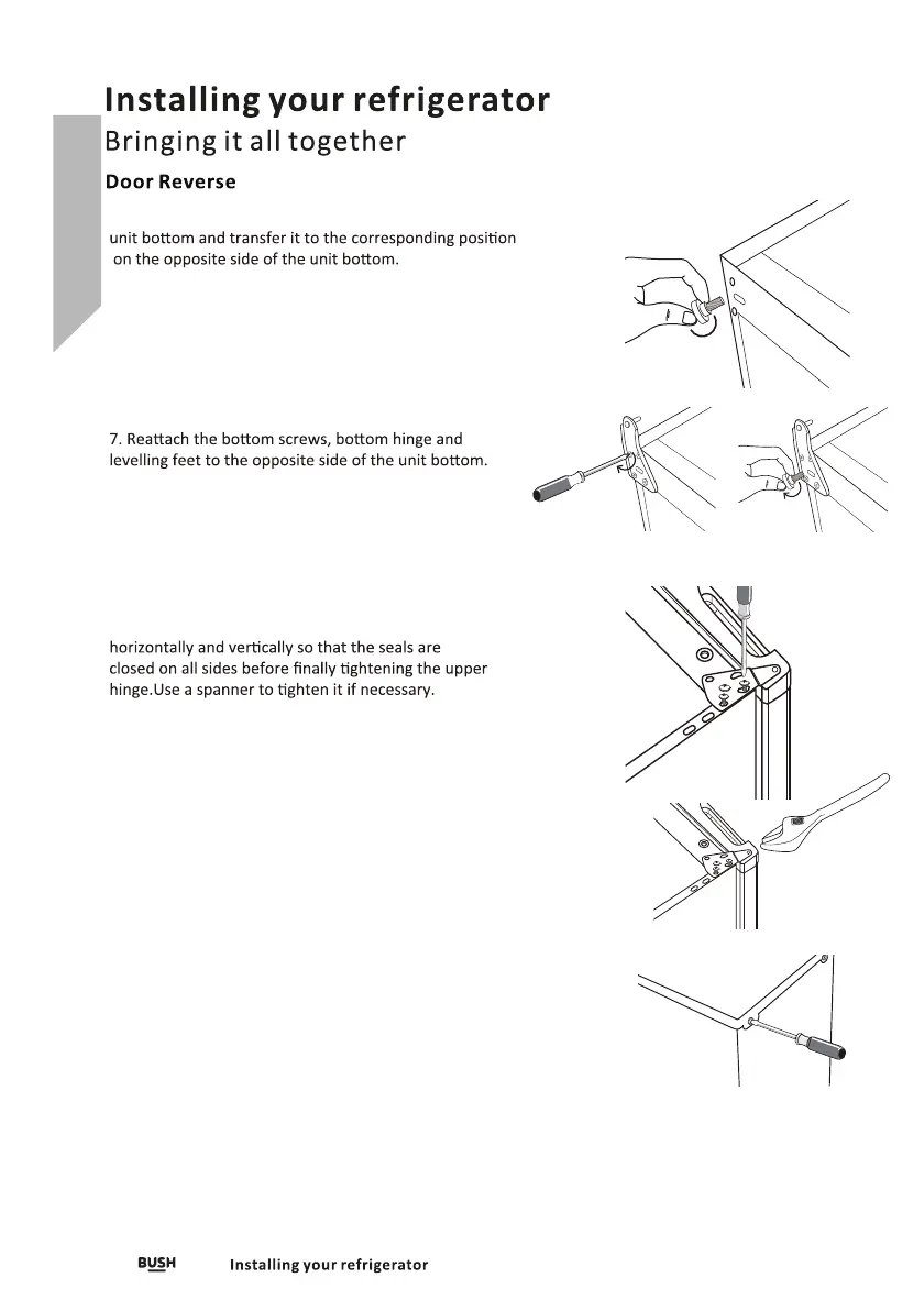 upper hinge and screws. Ensure the door is aligned
