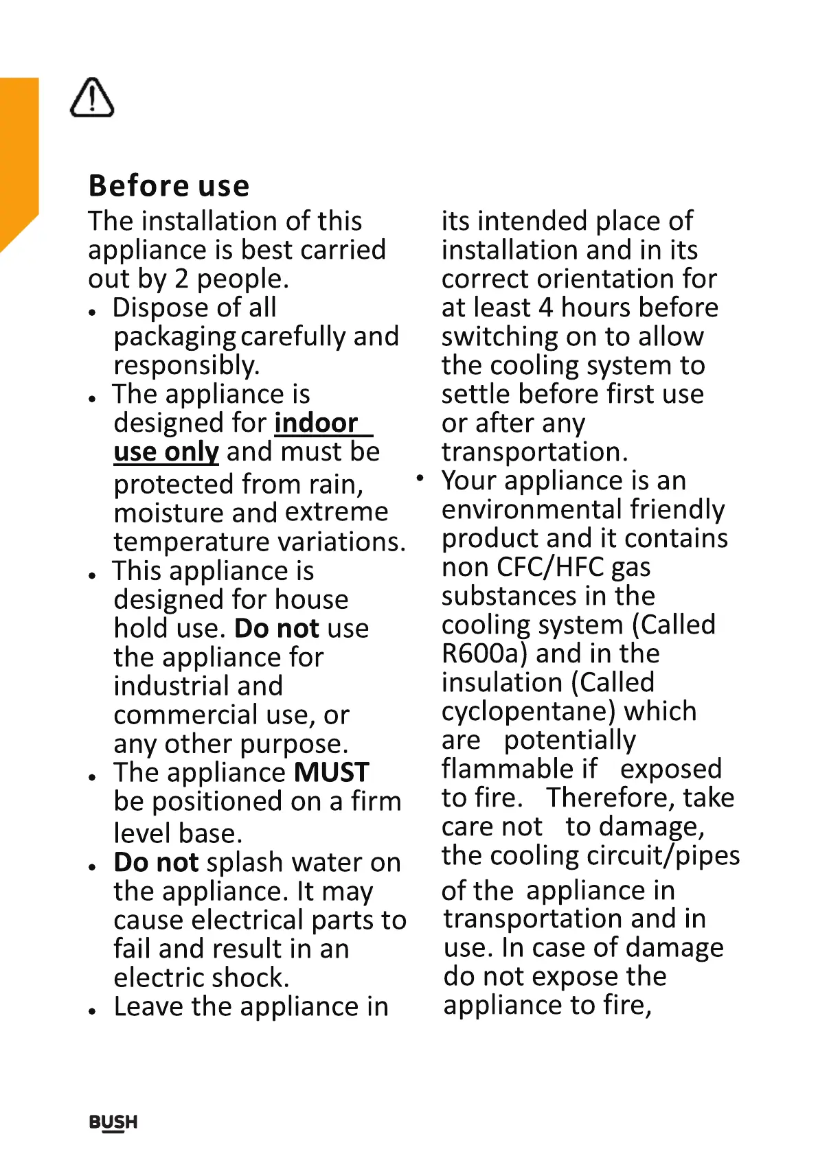 Bush MSBSB20 - Safety information; Before use