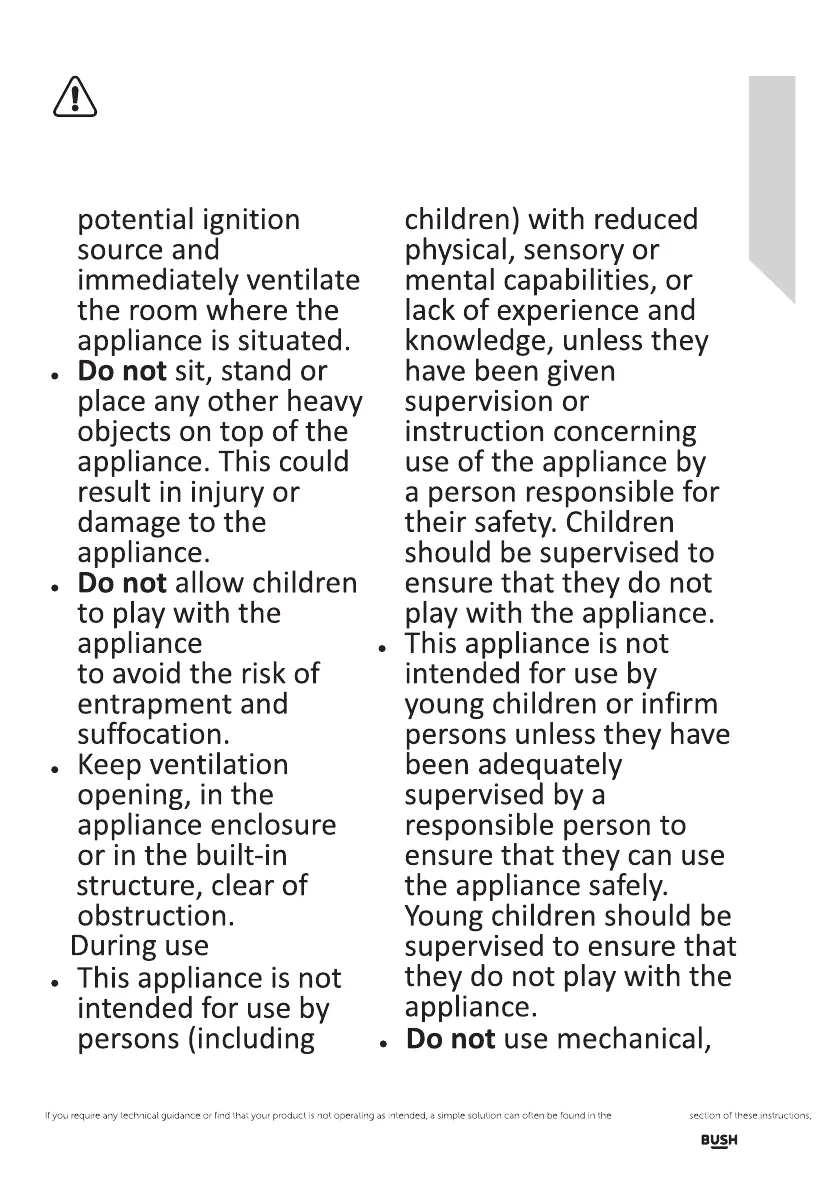 Bush MSBSWTDB20 - General Usage Warnings