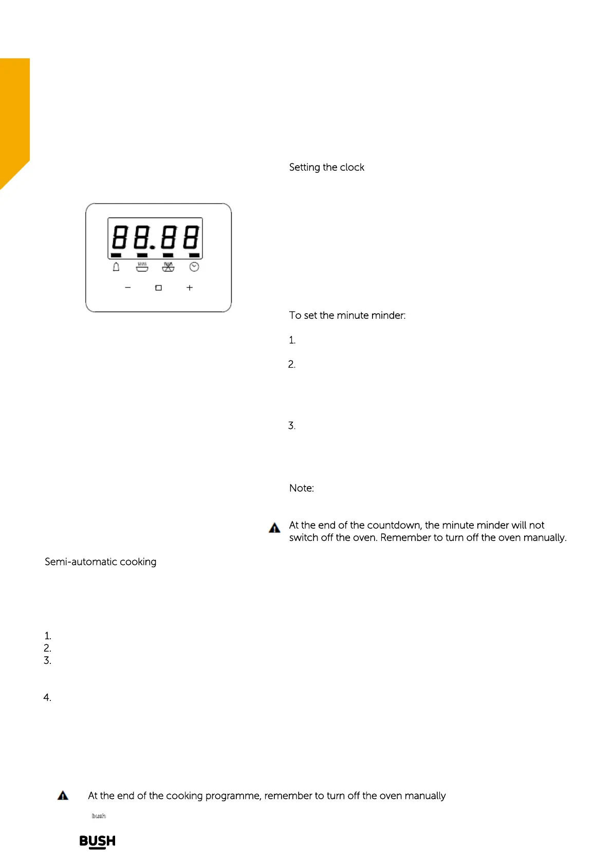 t the end of the cooking programme, remember to turn off the oven manually