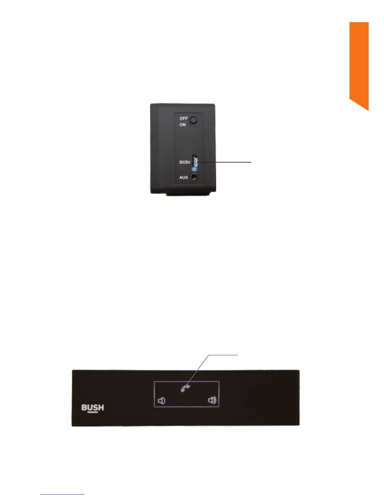port (5) of the Bluetooth speaker, and connect the other end to a 5Vdc USB