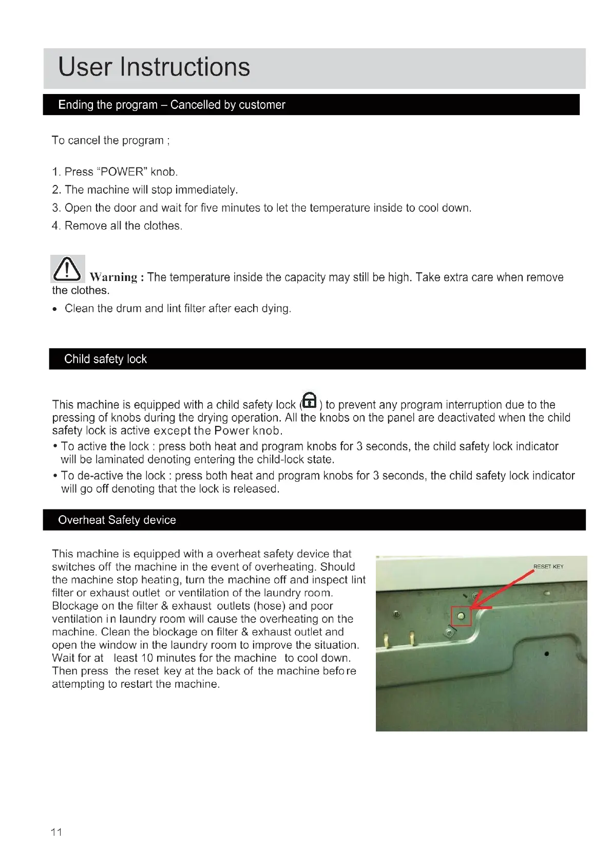 Bush TDV6B - Child Safety Lock Mechanism; Overheat Safety Device and Reset