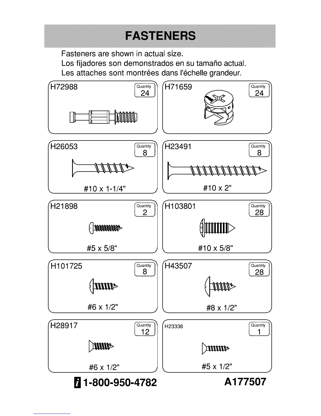 Bush WC81410 - Fasteners List; Hardware Specification and Quantity