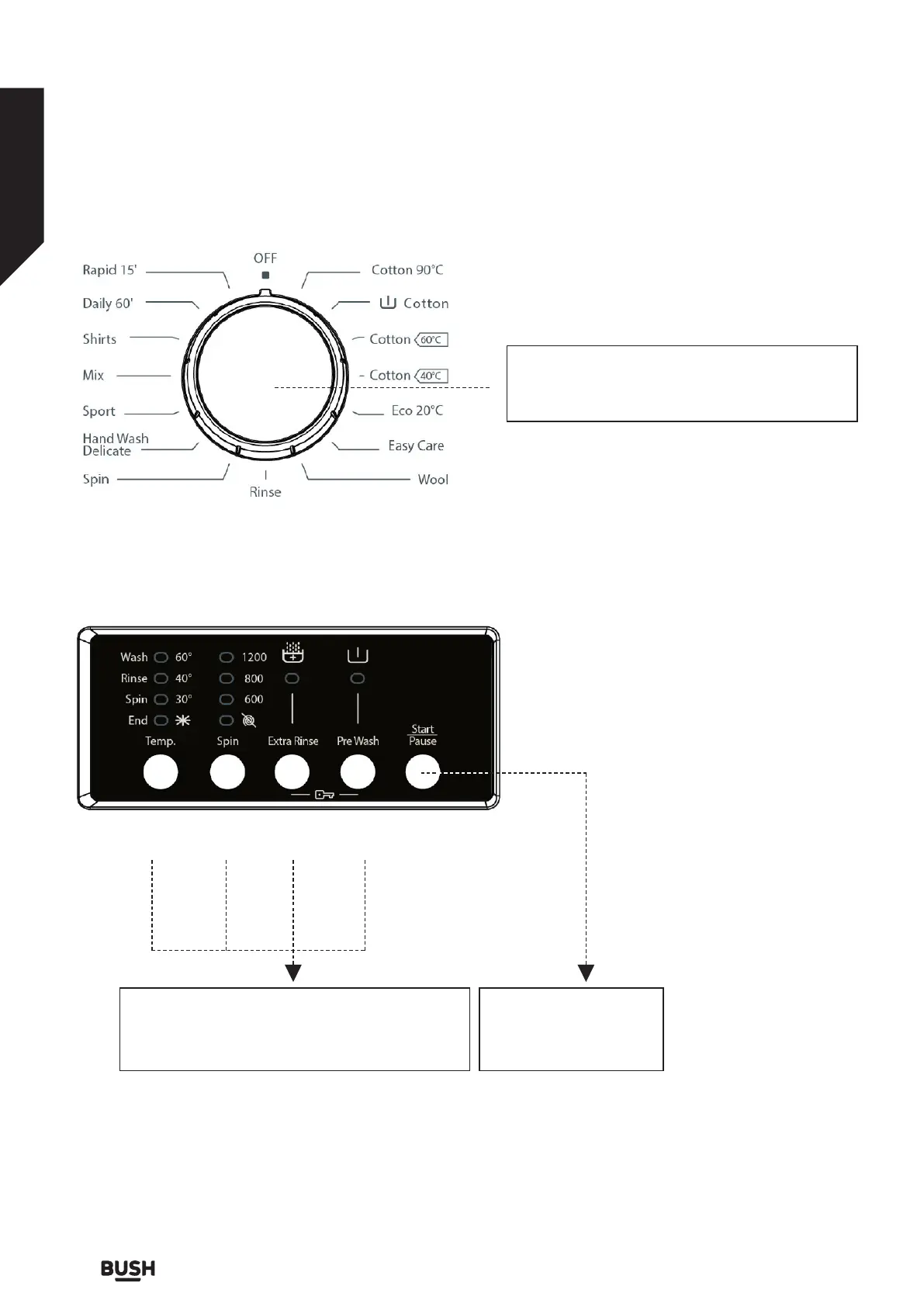 Bush WMNB812EW - Programme Selection and Controls