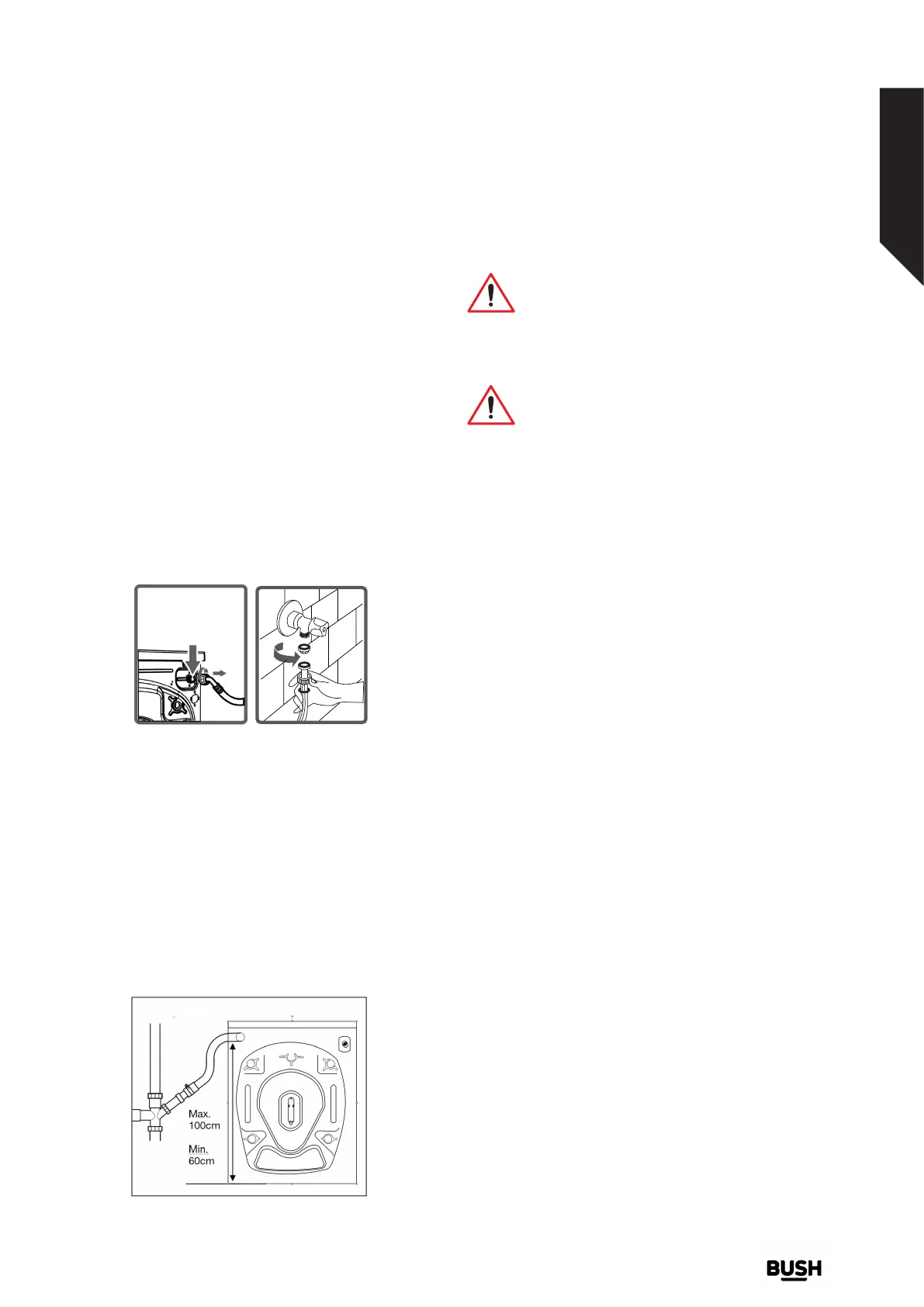 drain hose MUST be between 60 - 100cm from the