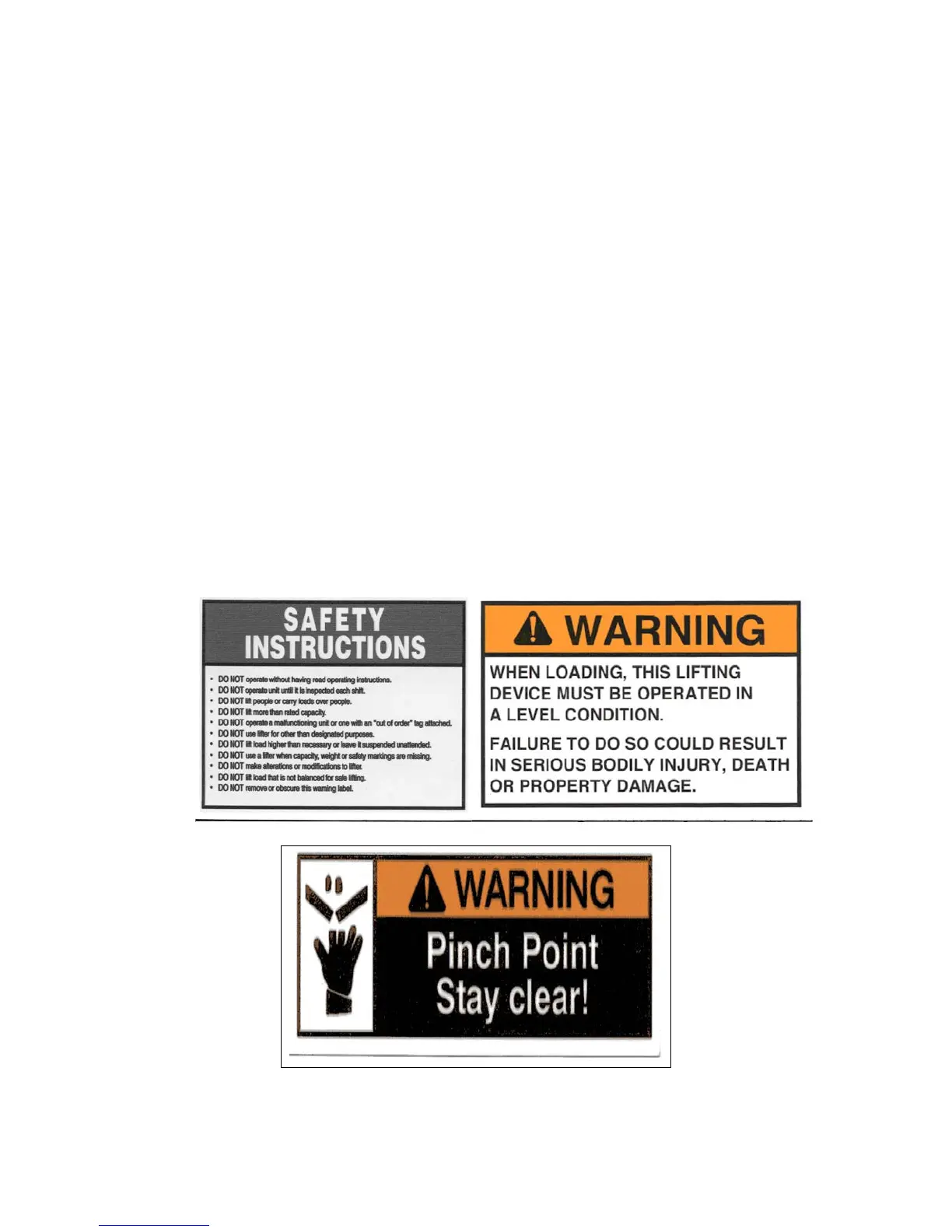injury by keeping hands and feet clear as the lifter is lowered into the stand.